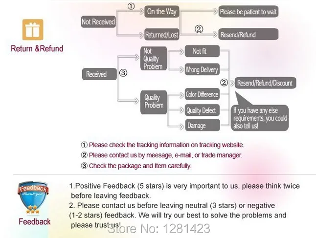• If you received the wrong item you can request a refund or a reshipment.