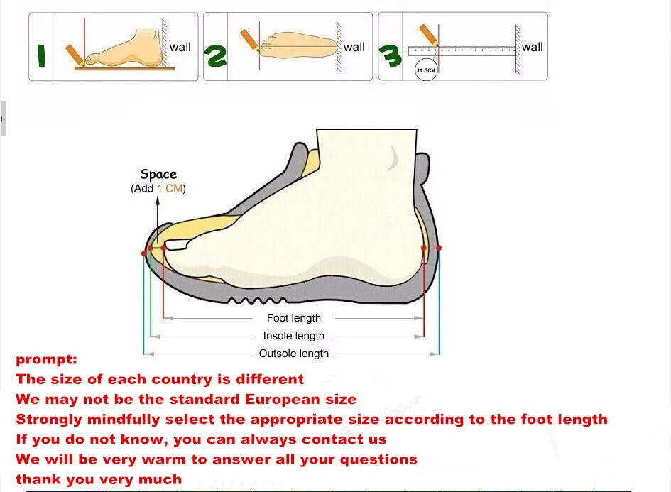 We strongly demand: Depending on the length of the foot according to our size chart to