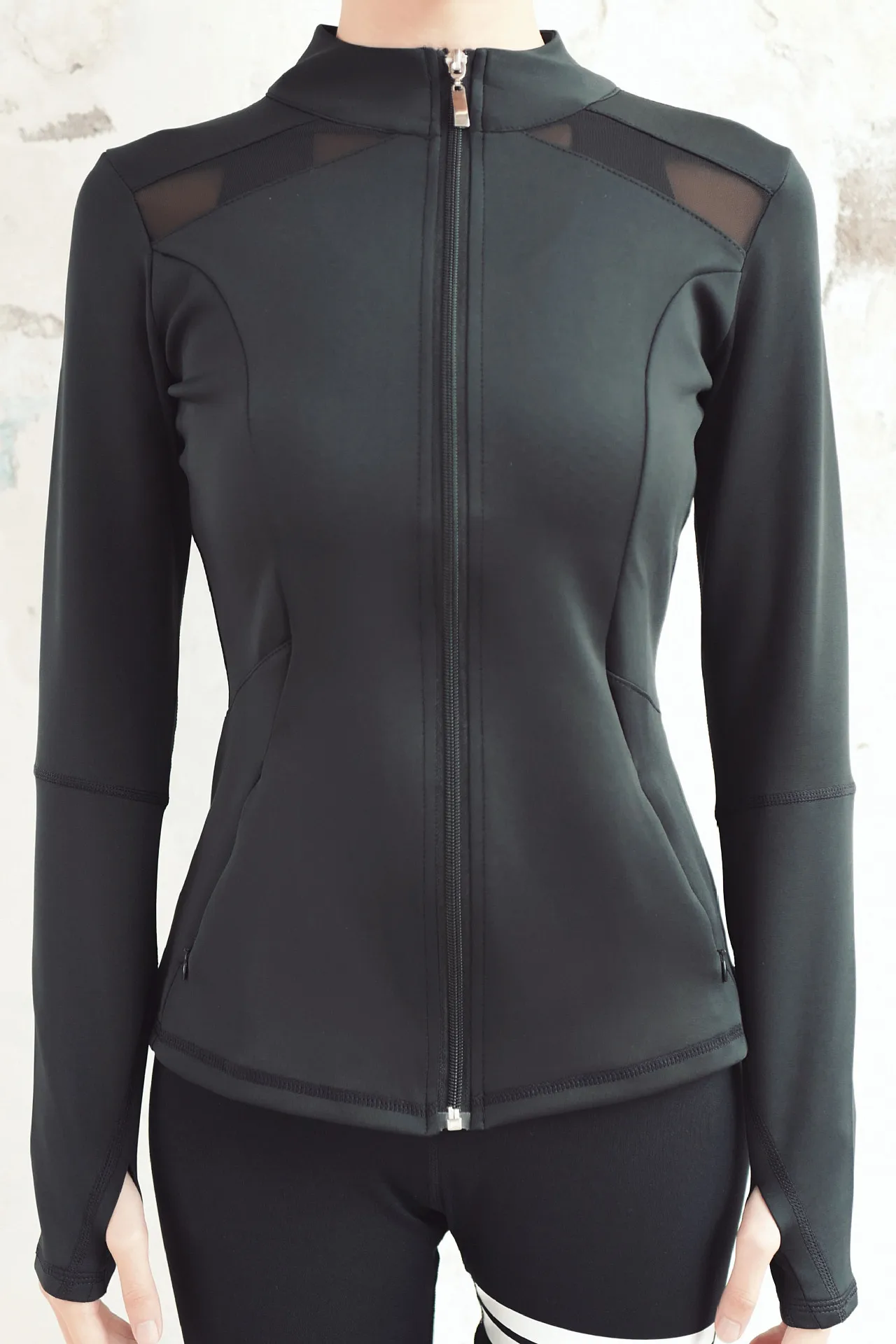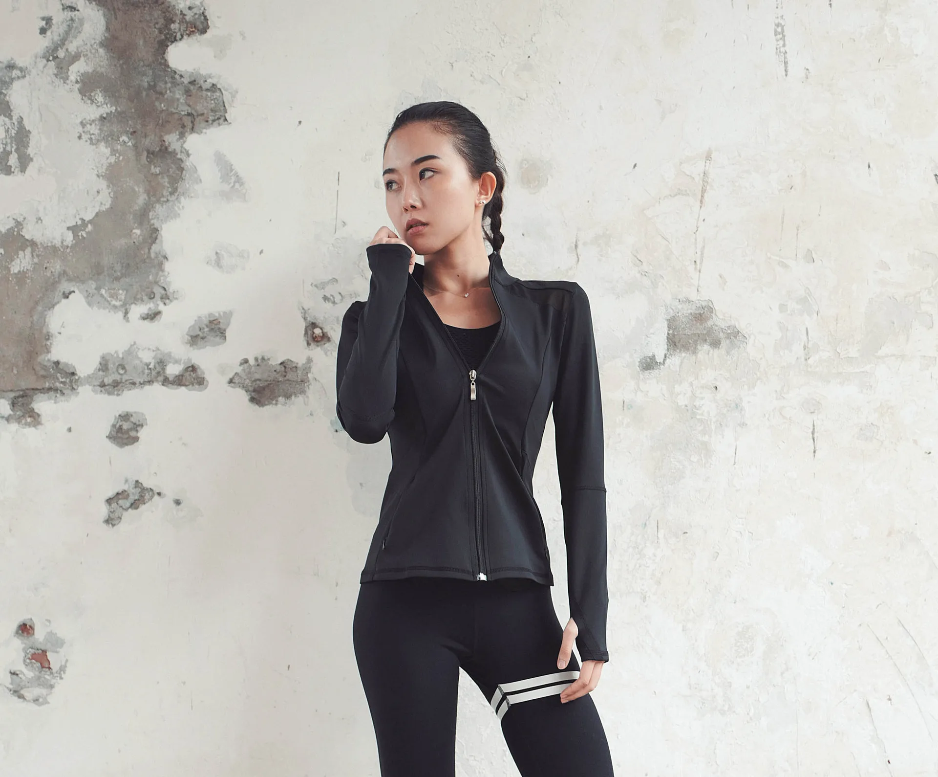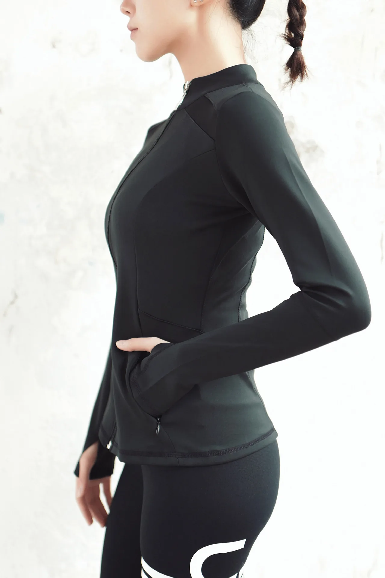 Women Sport Jacket Mesh Sexy Zipper Quick Dry High Flexible Outdoor Training Coat Long Sleeve Breathable Shirt Top