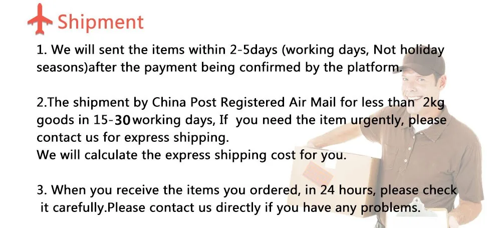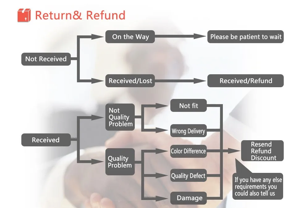 • If you did not receive the product within the guaranteed time( 45 days not including 2-5 day processing) you can request a refund or a reshipment.