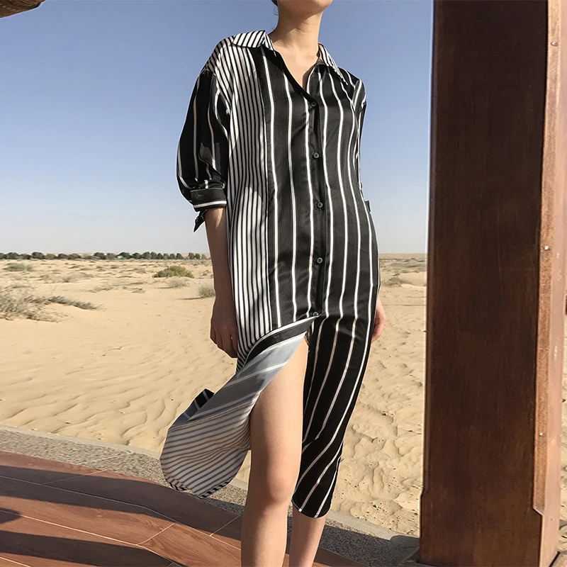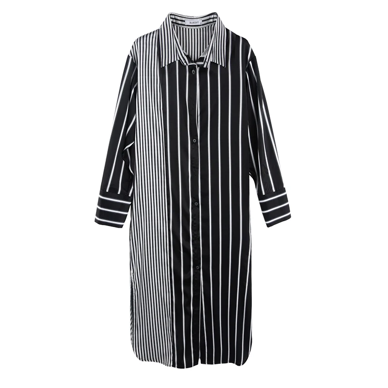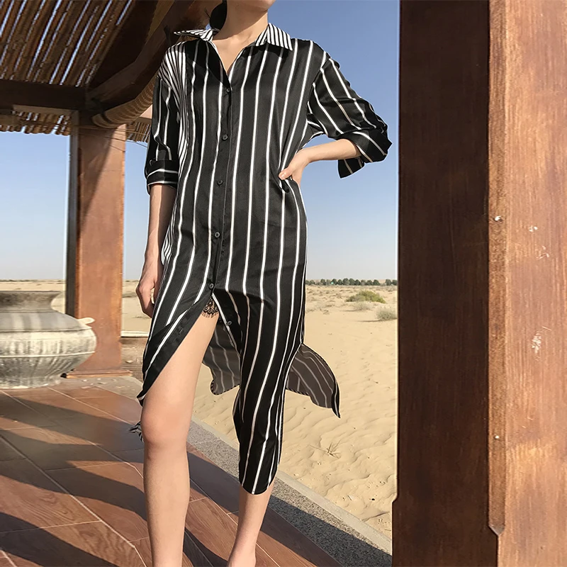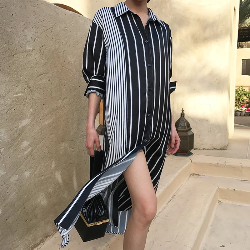 Women Striped Dress 2018 Autumn Sexy Split Hem Party Dresses Female Long Sleeve Casual Loose Vintage Vestidos Plus Size