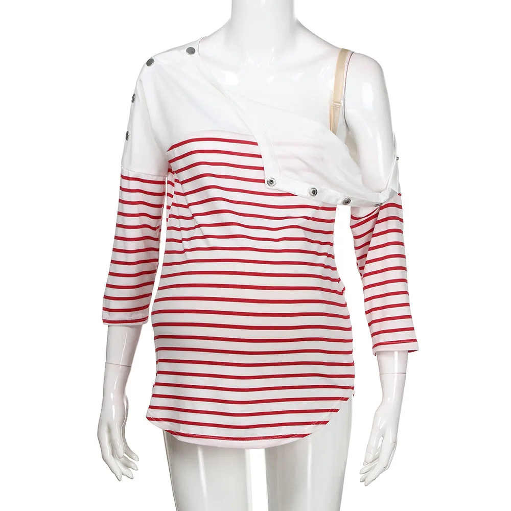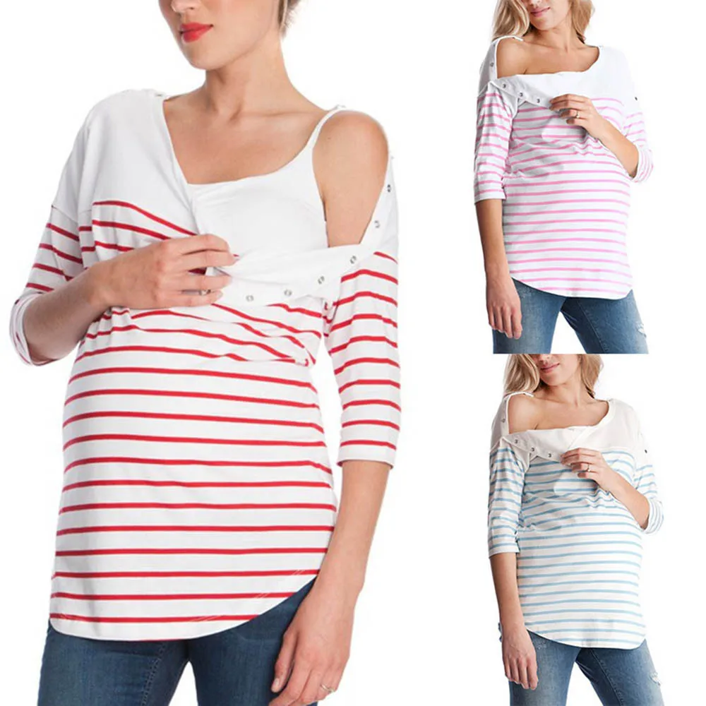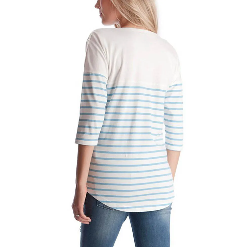 Women Striped Pregnant Nursing Baby For Maternity Pajamas Blouse Tops Soft Multifunctional Pregnant Breastfeeding T-shirt