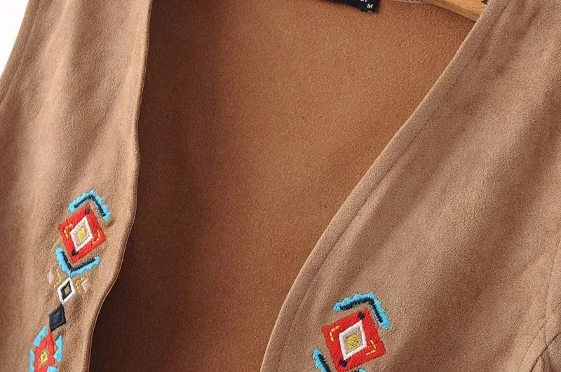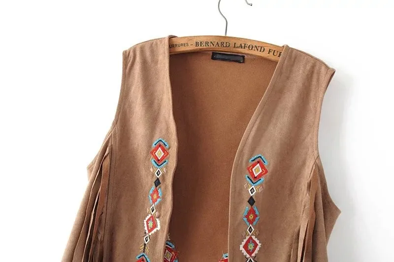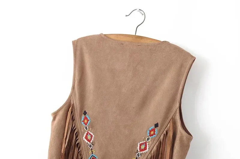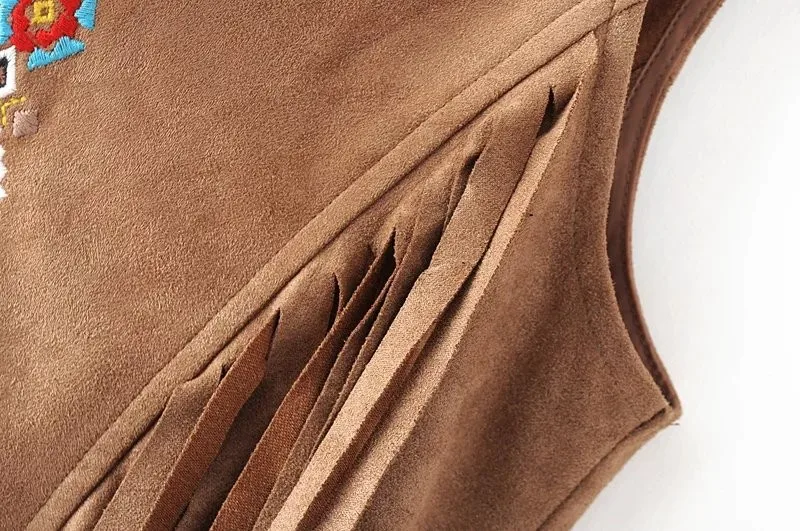 Women suede vest summer new arrival embroiidery black waistcoat tassel vests ladies brown sleeveless jacket drop shipping