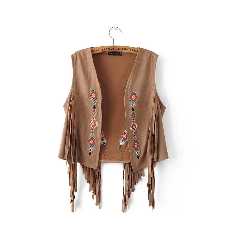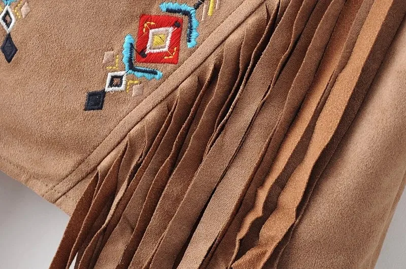 Women suede vest summer new arrival embroiidery black waistcoat tassel vests ladies brown sleeveless jacket drop shipping