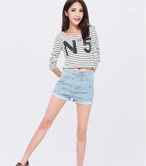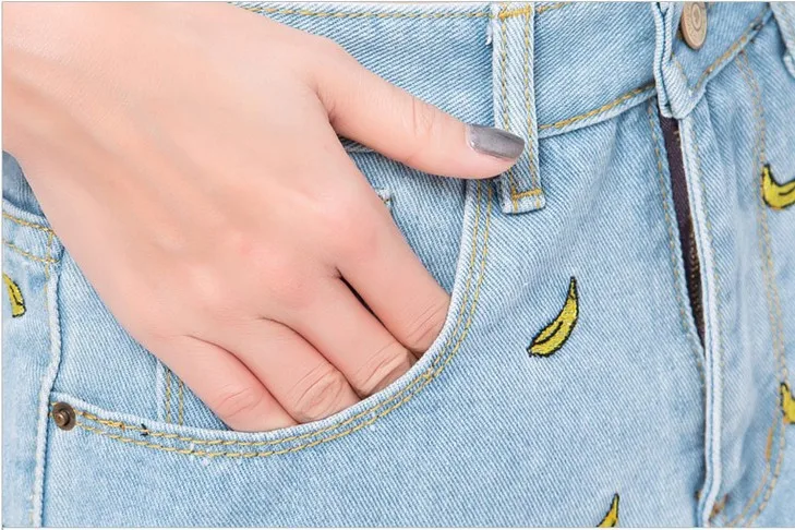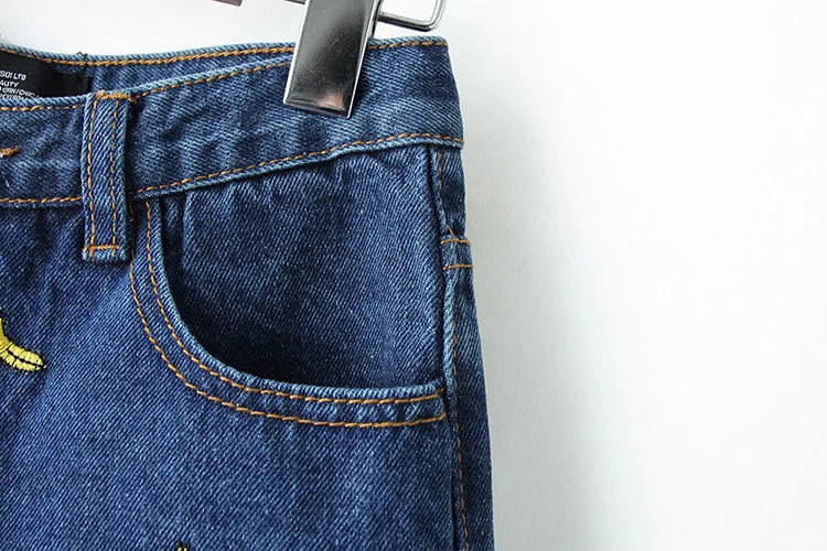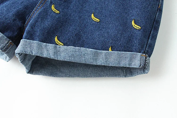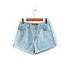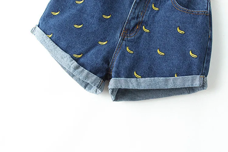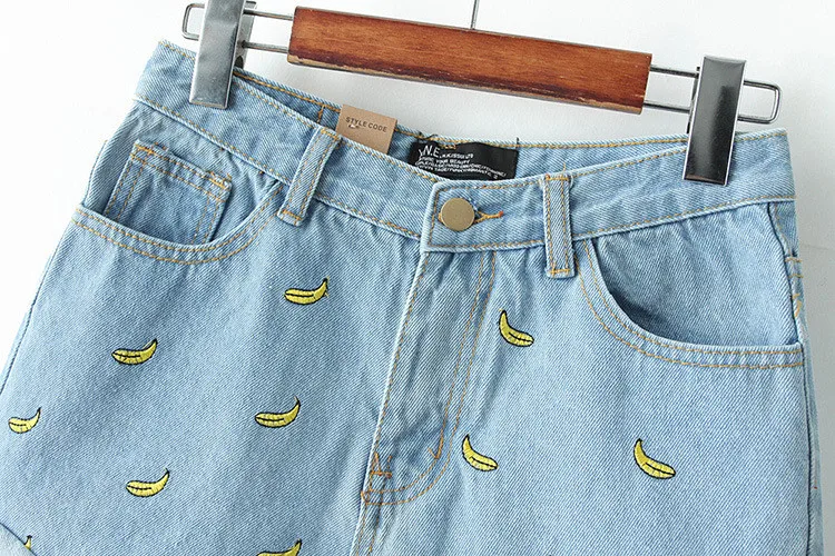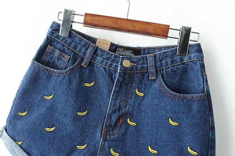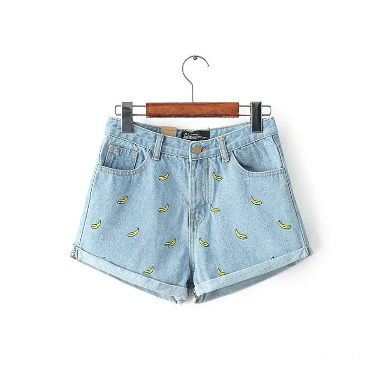 Women Summer Banana Flower Embroidery Cotton Denim Shorts 2016 curling Loose Large Type casual female waist Jeans Shorts