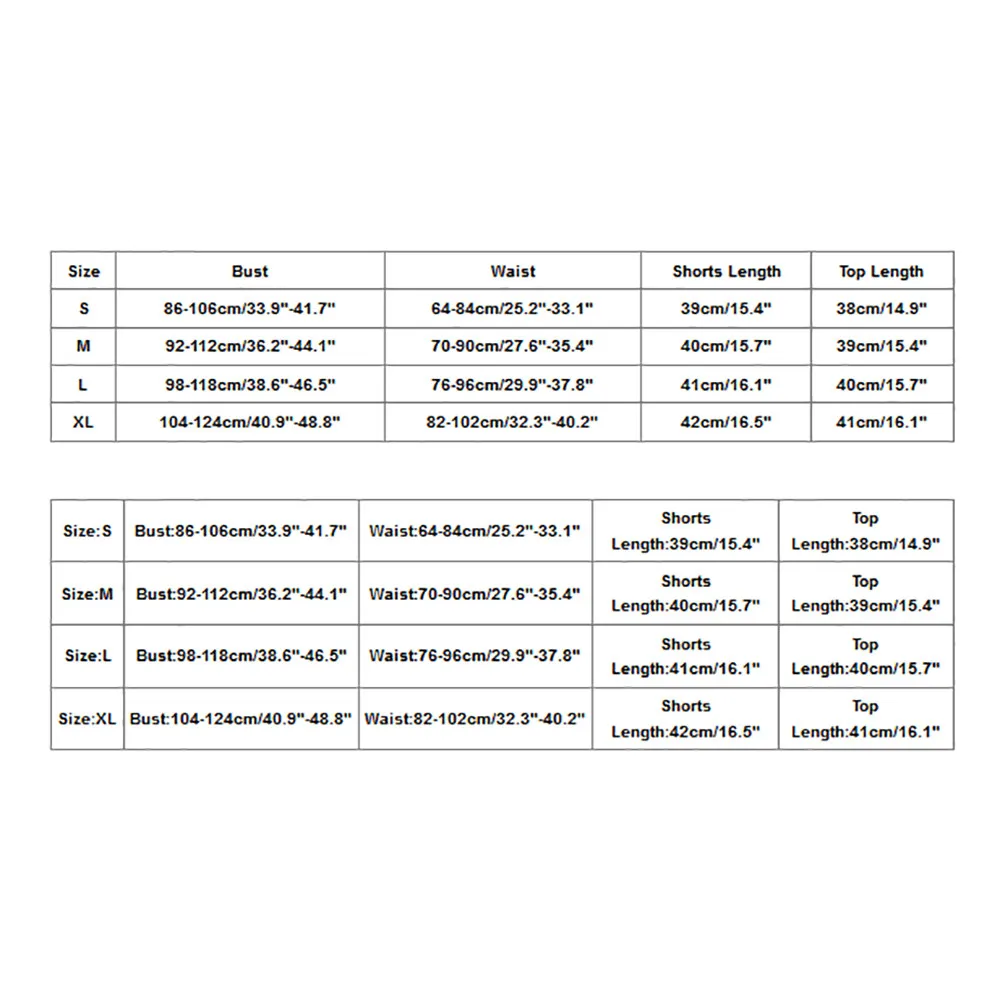 Size Bust Waist Shorts Length Top Length