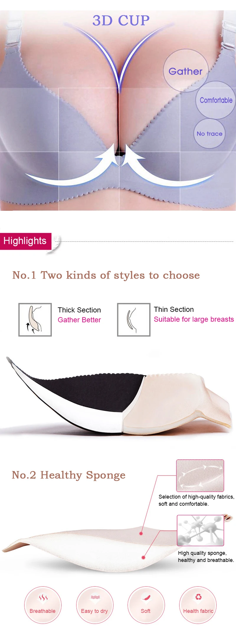 Women Super Push Up Seamless underwire Bra Gather Adjustable Girls soid Lingerie Bra 6 Color Cup Strappy Women’s Bras underwear