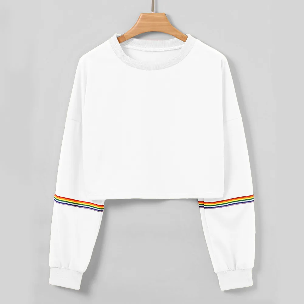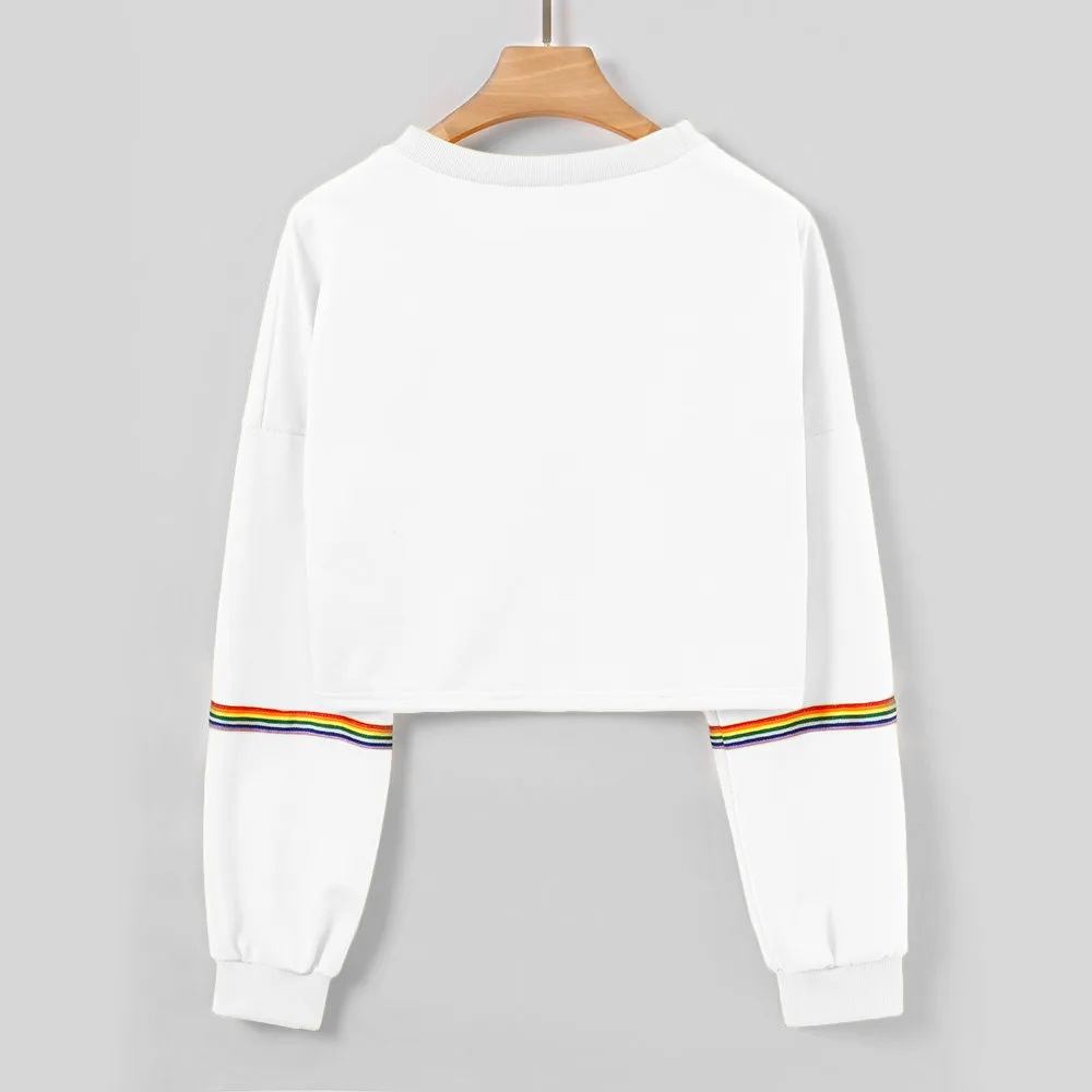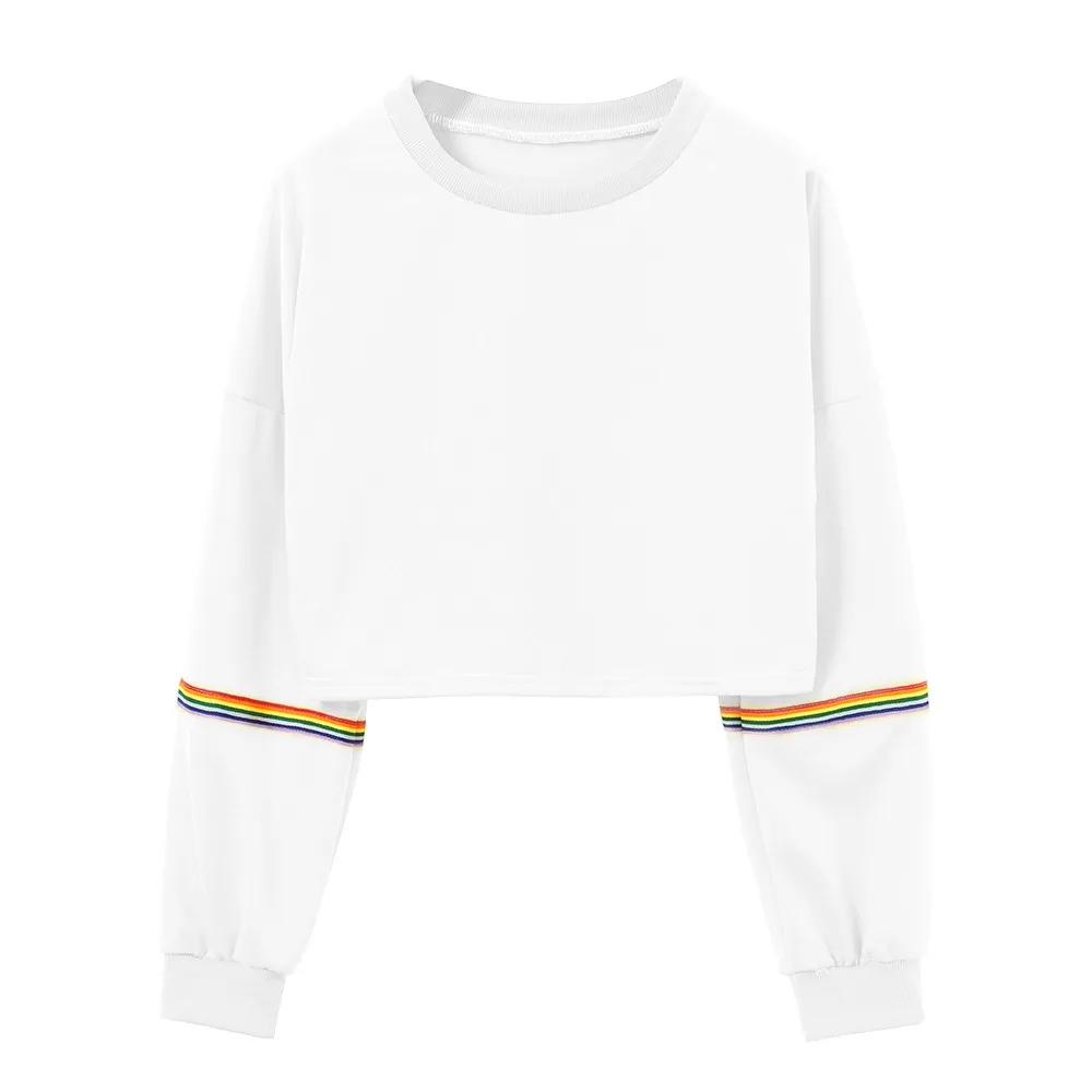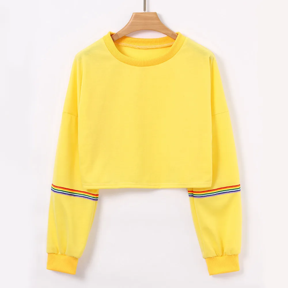 Women Sweatshirts Long Sleeve Striped Crop Short Women Clothing Feminina Sweatshirt Jumper Black Pullover Top Sweatshirts Femme