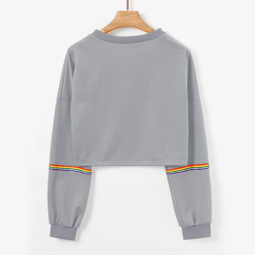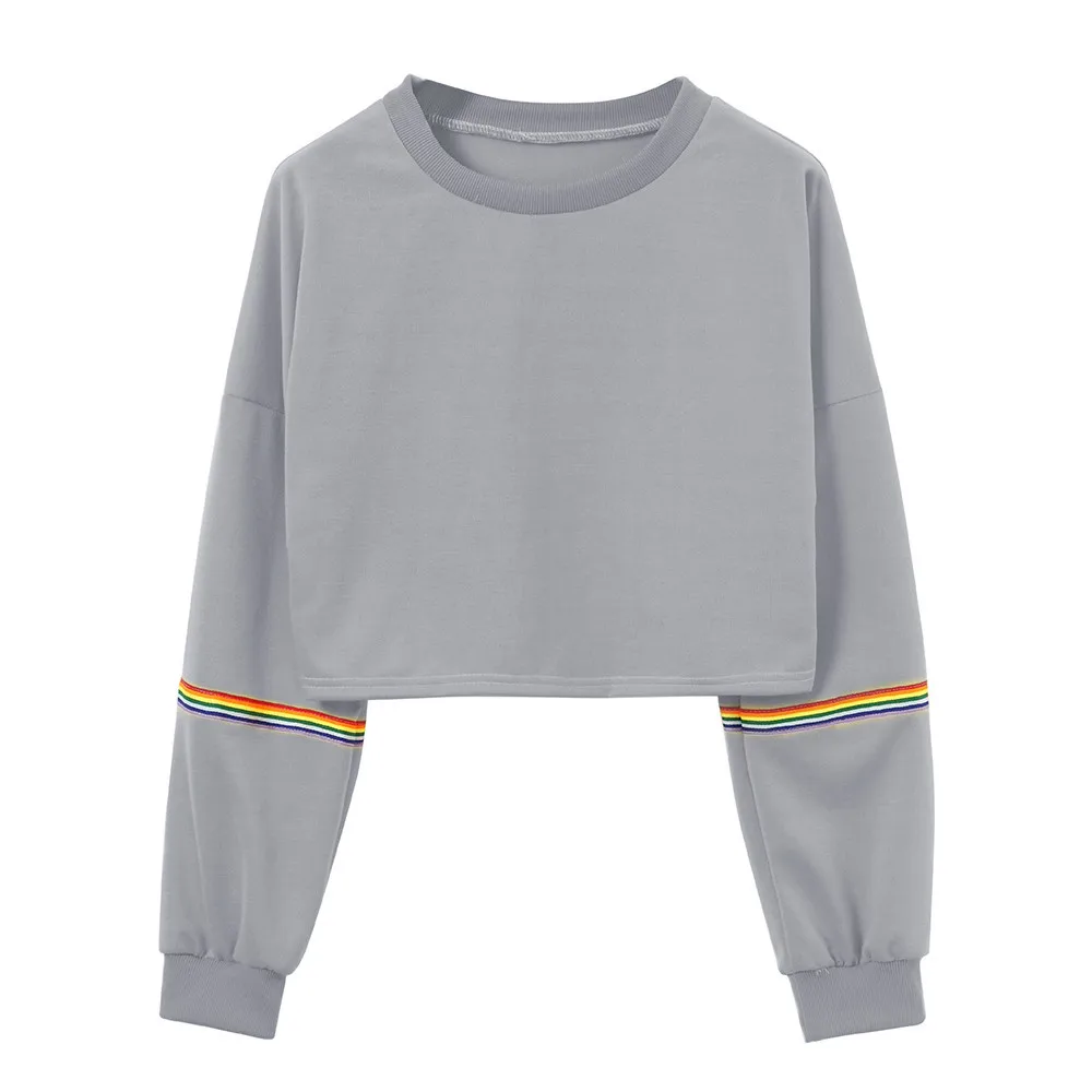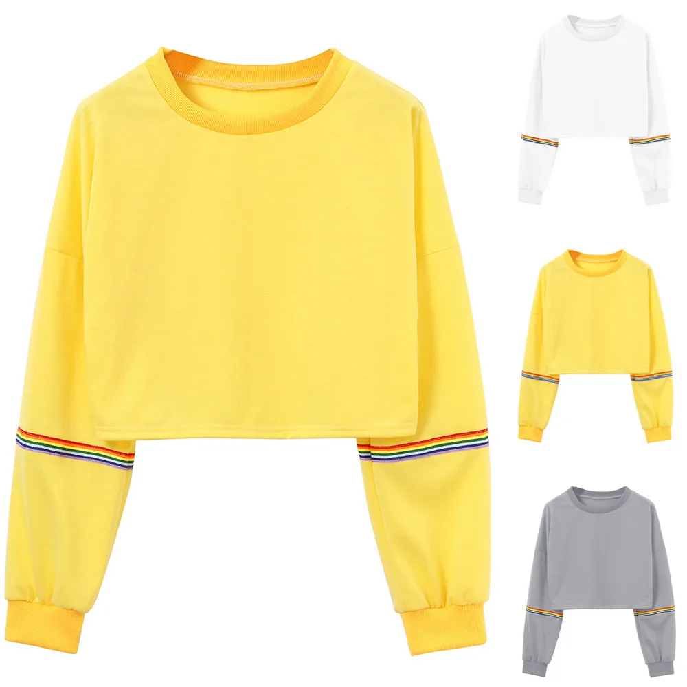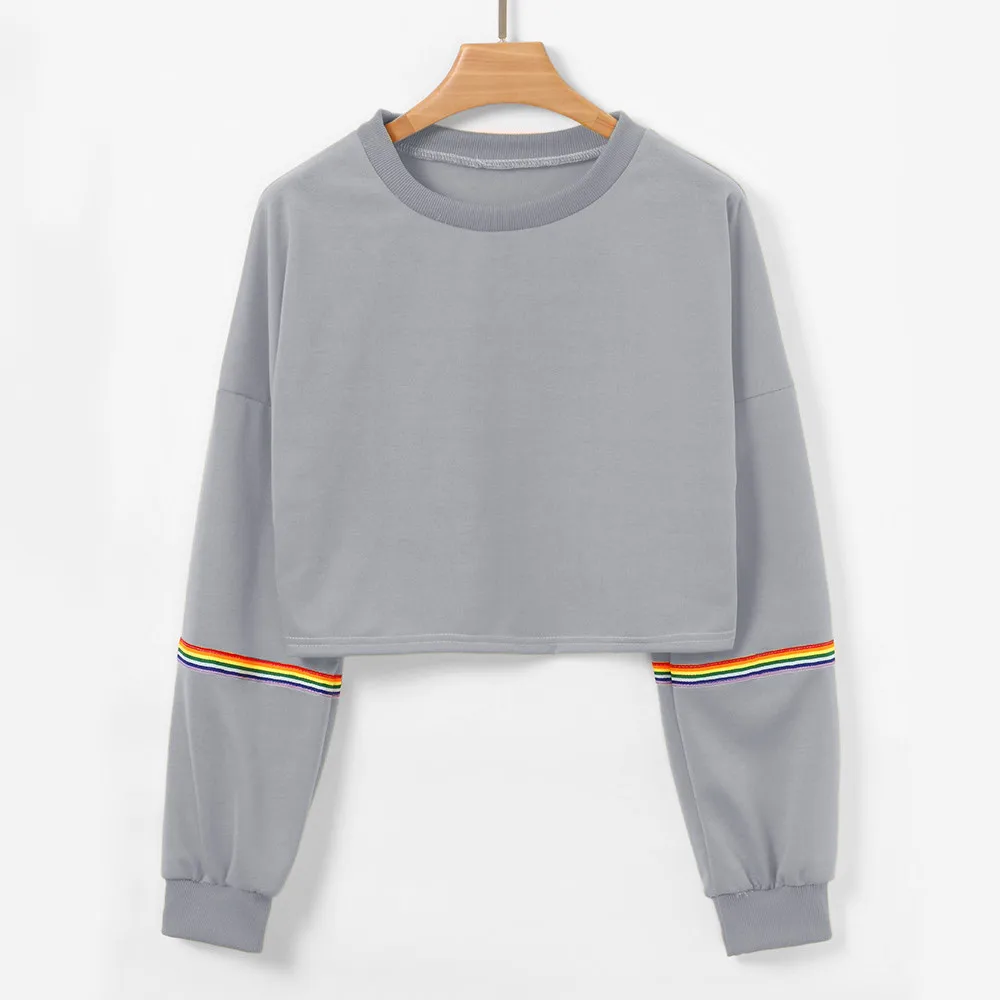 Women Sweatshirts Long Sleeve Striped Crop Short Women Clothing Feminina Sweatshirt Jumper Black Pullover Top Sweatshirts Femme
