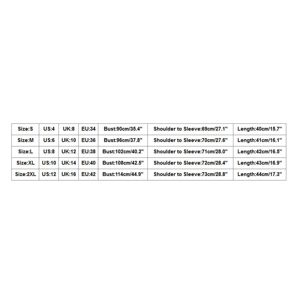 Size US UK EU Bust Shoulder to Sleeve Length