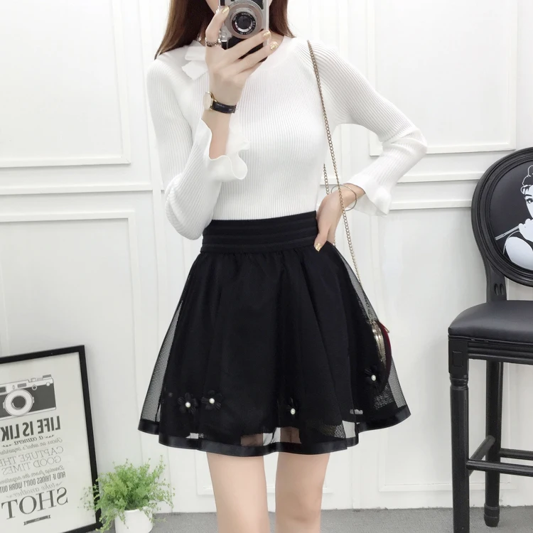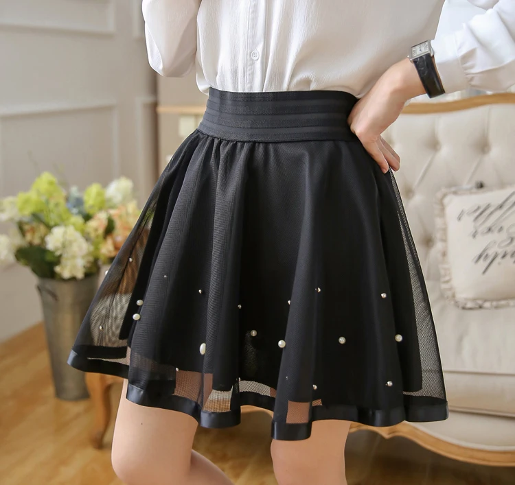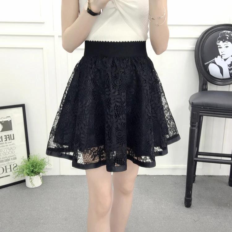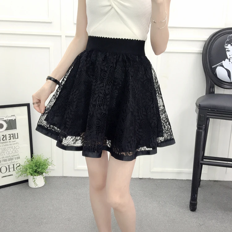 N.POKLONSKAYA Women Tulle Lace Skirt Summer Elastic High Waist Short Mini Pleated Skirts Womens lolita Girls Tutu Shorts Skirt DL093