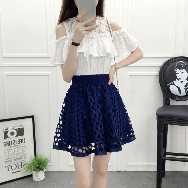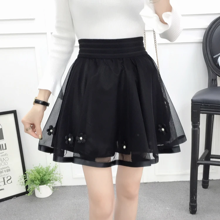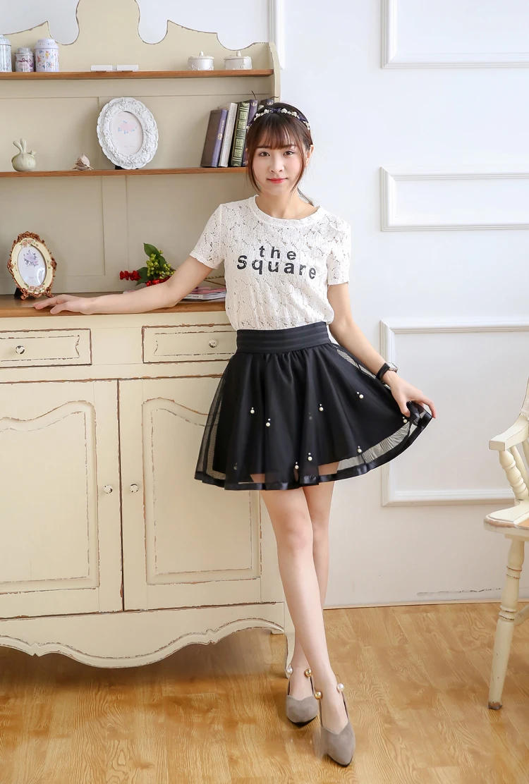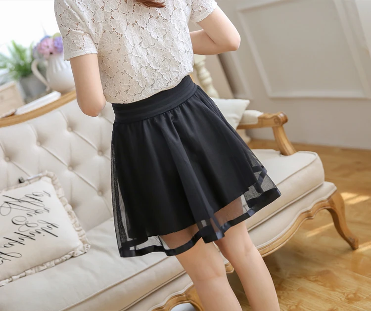 N.POKLONSKAYA Women Tulle Lace Skirt Summer Elastic High Waist Short Mini Pleated Skirts Womens lolita Girls Tutu Shorts Skirt DL093