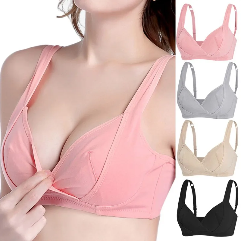 Women Underwear Cotton Front Open Breastfeeding Bras Wire Free Feeding Nursing Brassiere Solid Unlined Bra for Pregnant Women