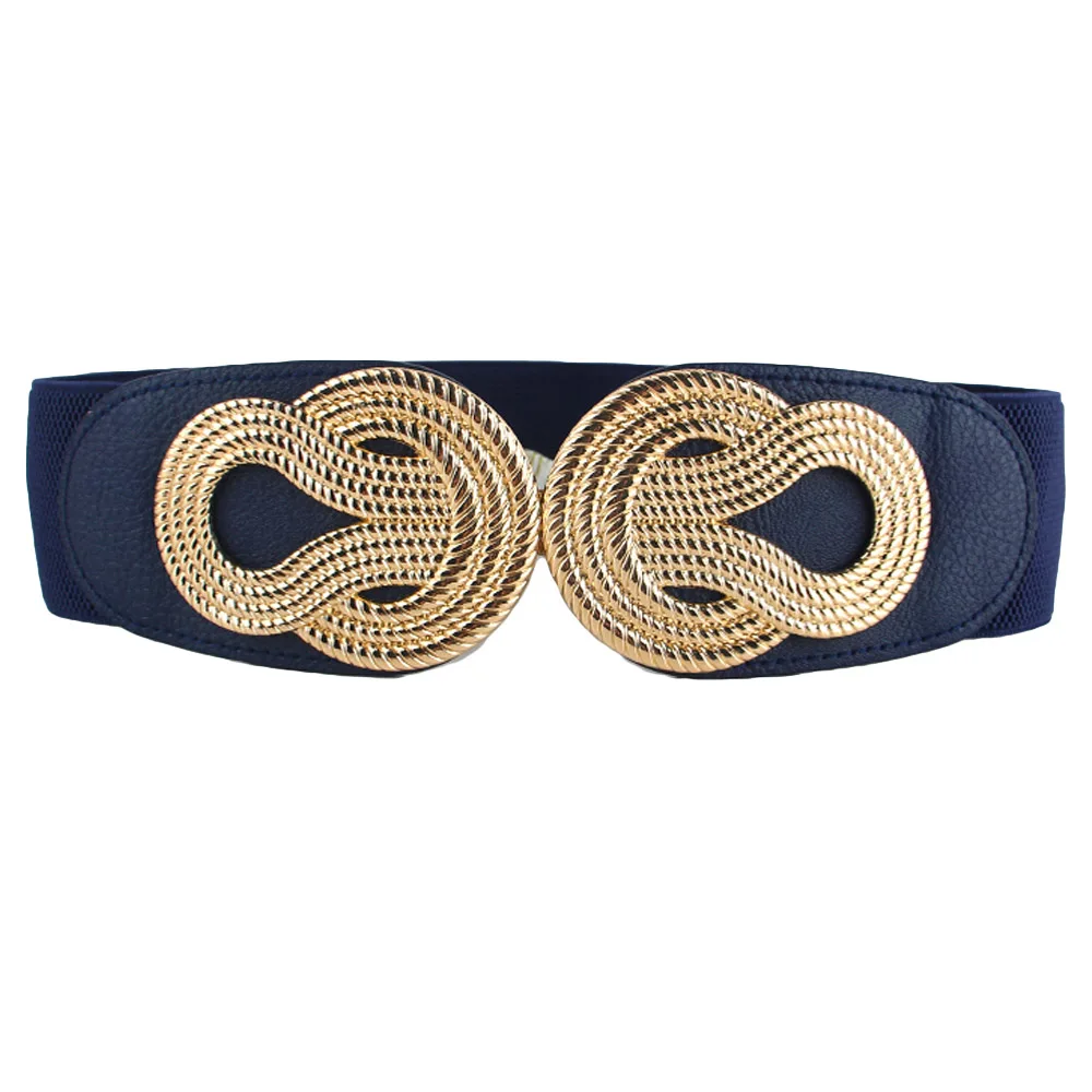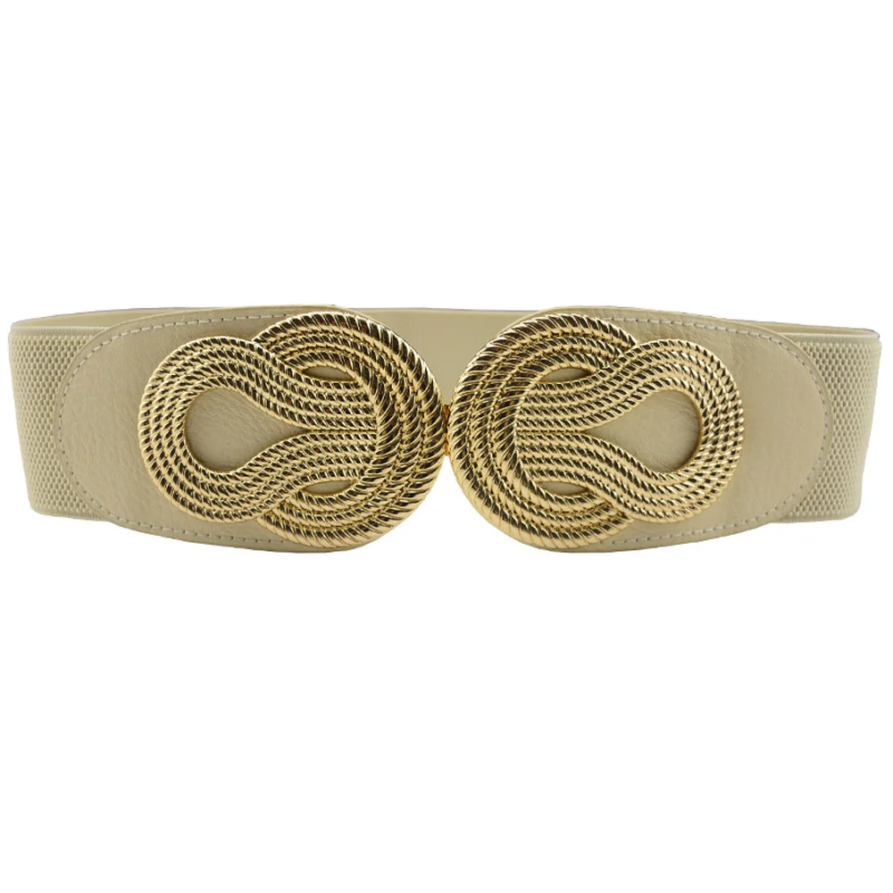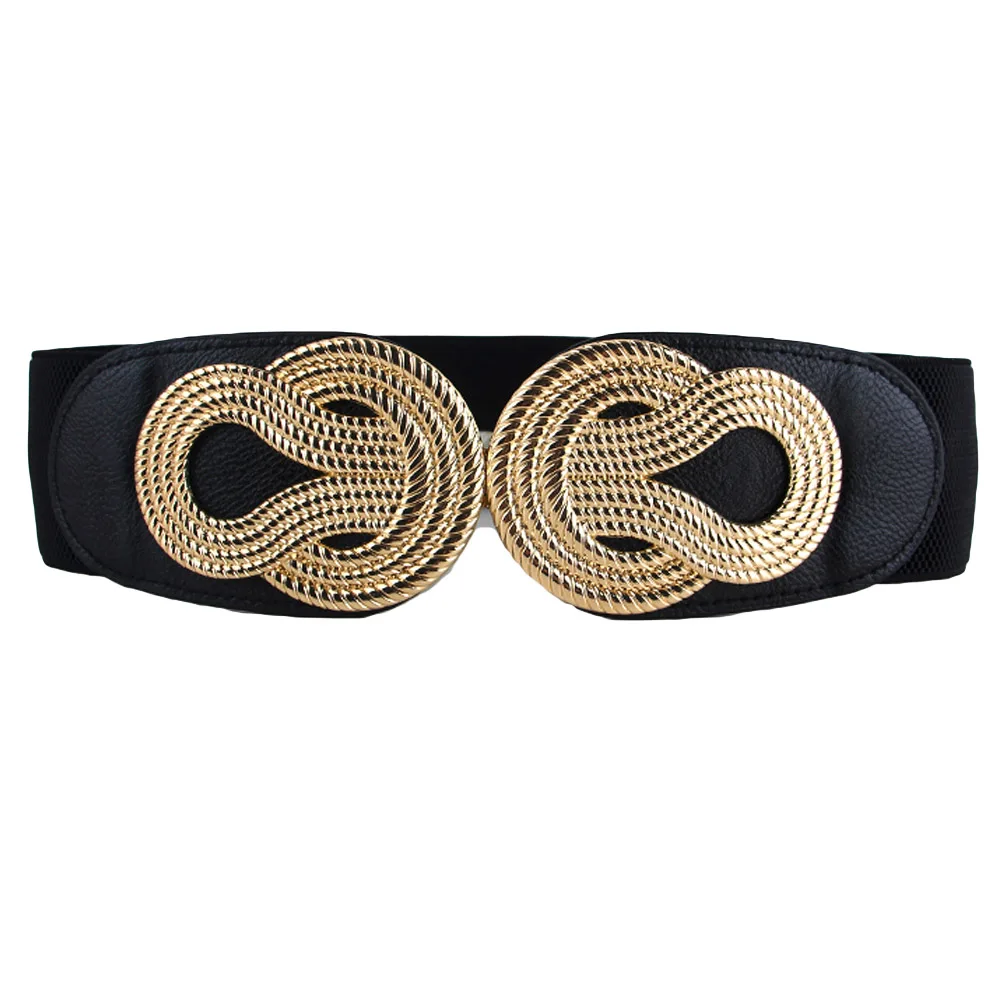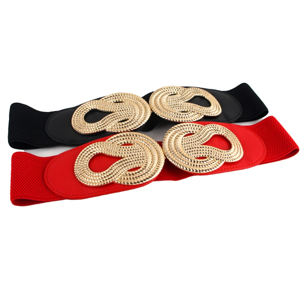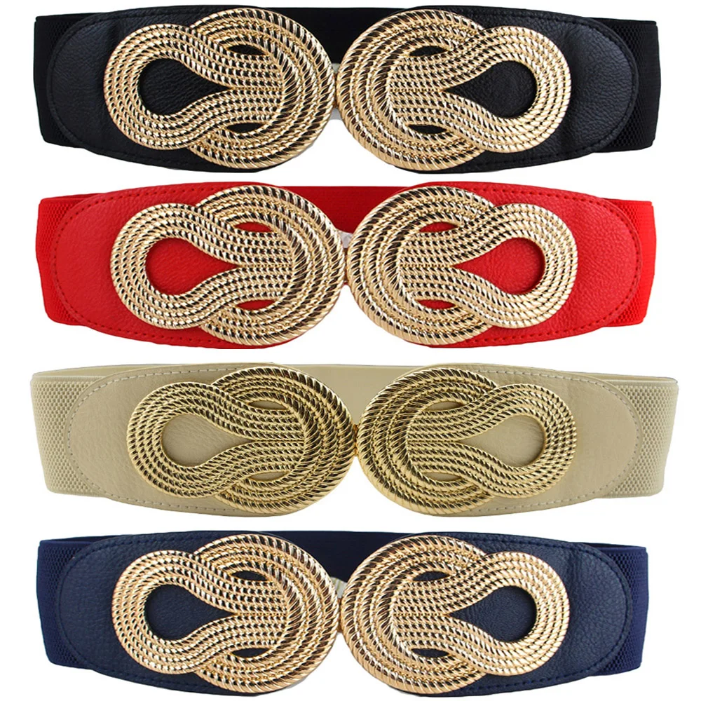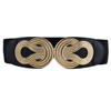 Women Vintage Chinese Knot Buckle Stretchy Belt Faux Leather Elastic Waist Band BLTHG0353
