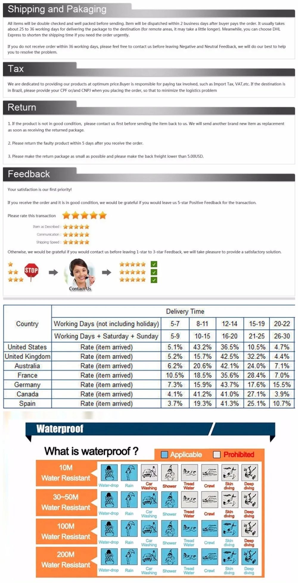 • If you did not receive the product within the guaranteed time( 45 days not including 2-5 day processing) you can request a refund or a reshipment.
