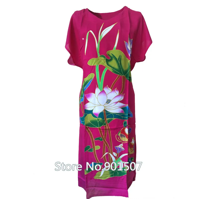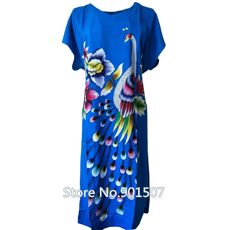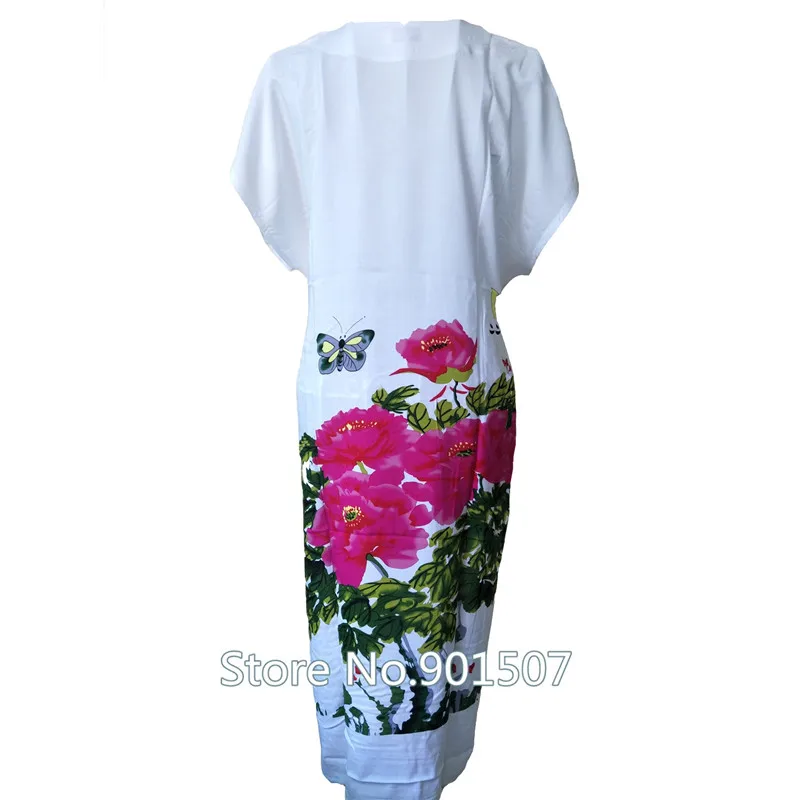 Women White Print Flower Nightdress Novelty Short Sleeve Sleepwear Robe Dress Casual Loose Cotton Nightgown Home Wear Bathrobe