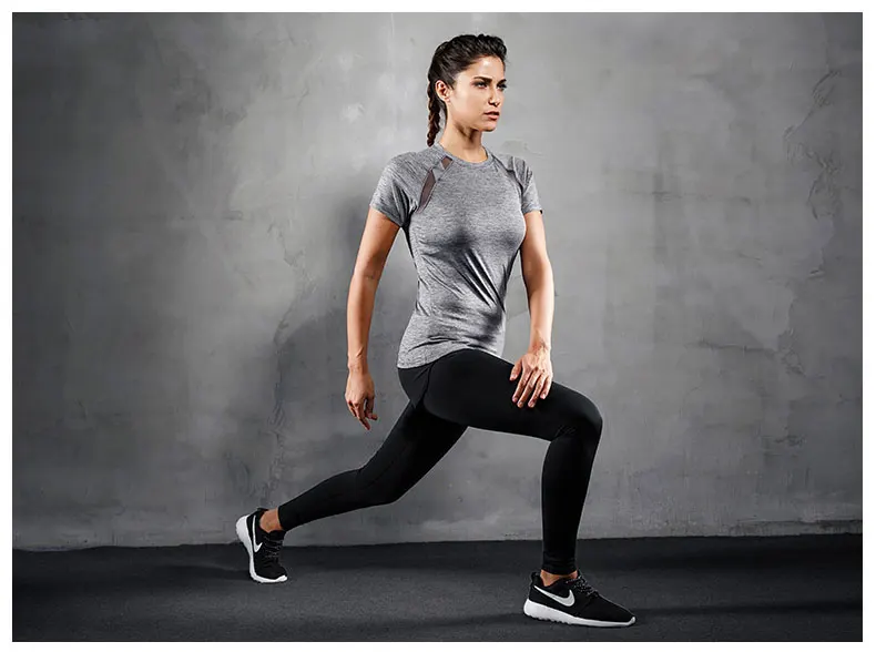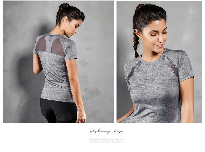 Women Yoga T Shirt Mesh Back Fitness Sports Wear Top Quick Dry Clothing Breathable Running Workout Gym Tee Short Sleeve Shirt