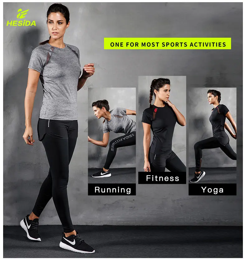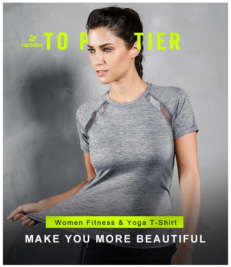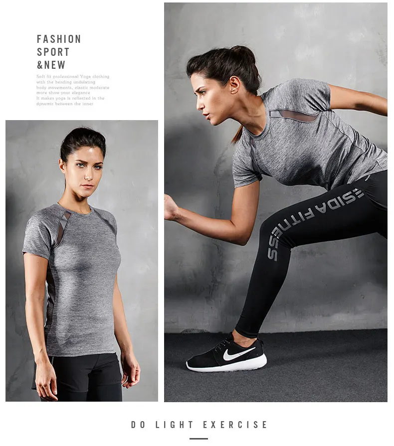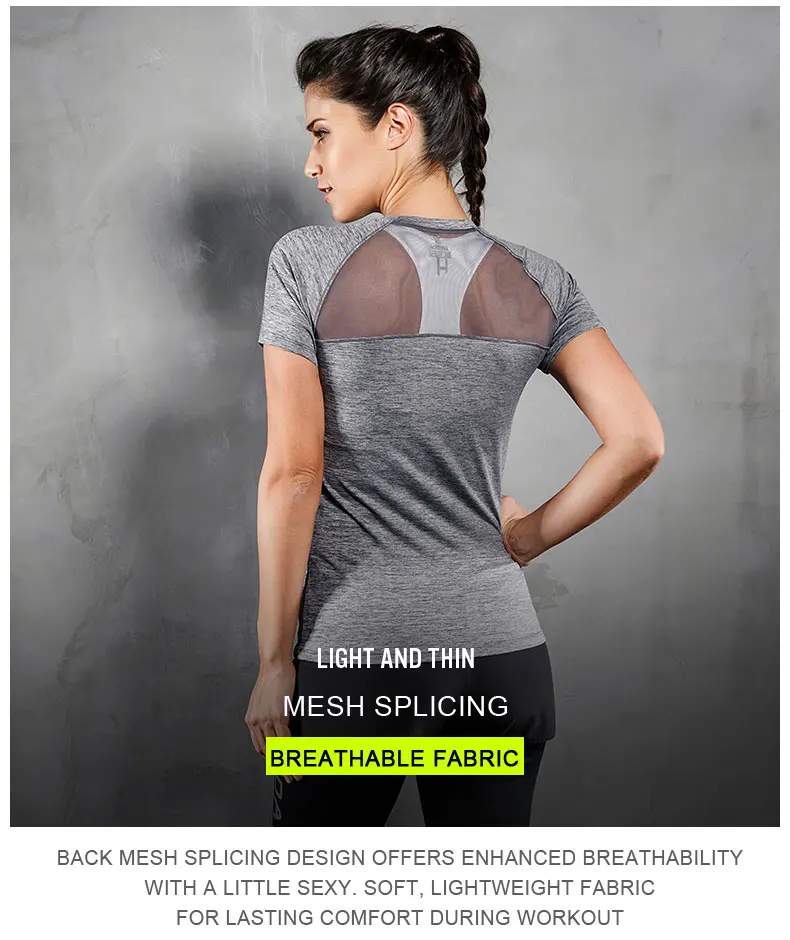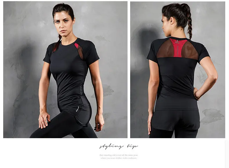 Women Yoga T Shirt Mesh Back Fitness Sports Wear Top Quick Dry Clothing Breathable Running Workout Gym Tee Short Sleeve Shirt