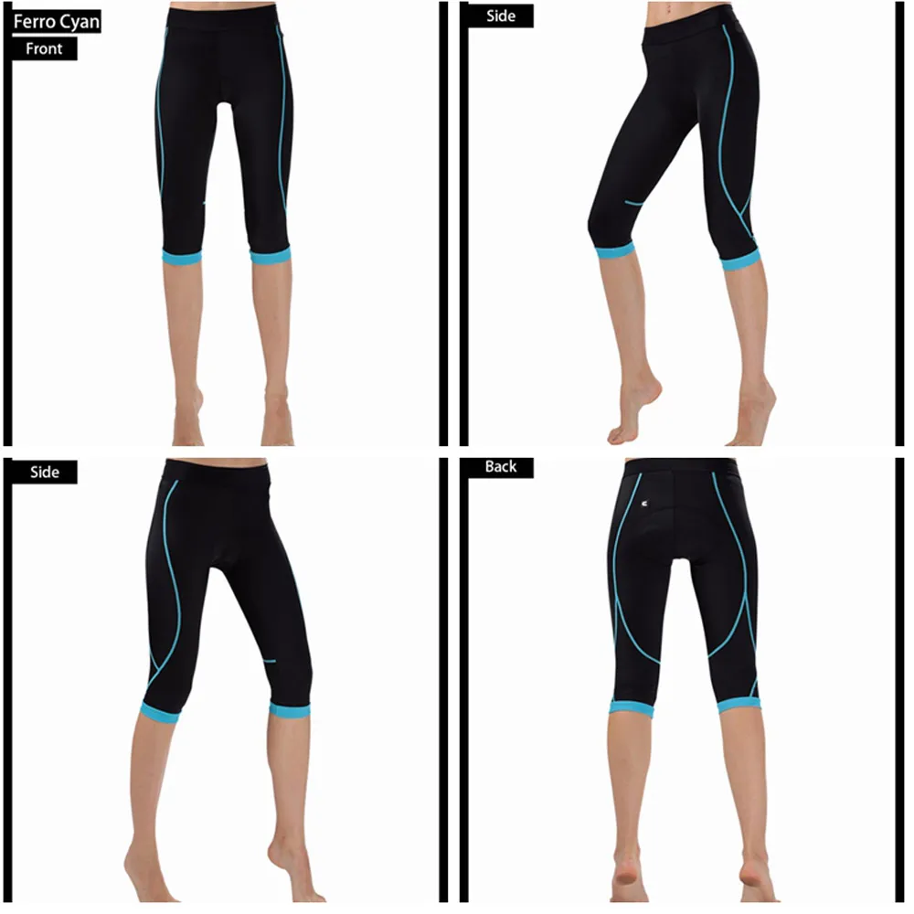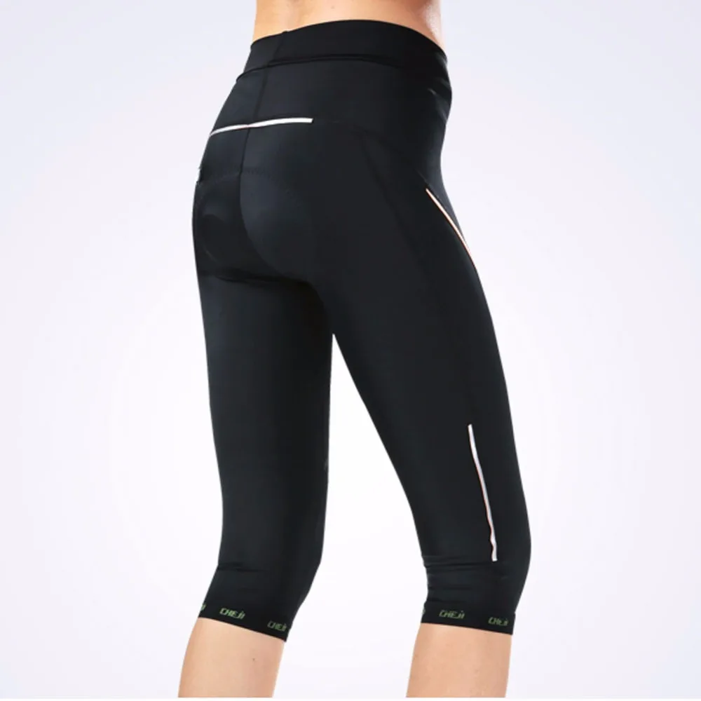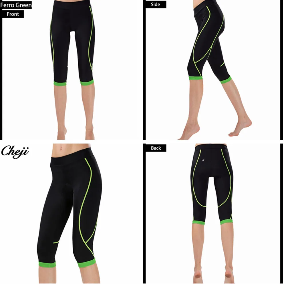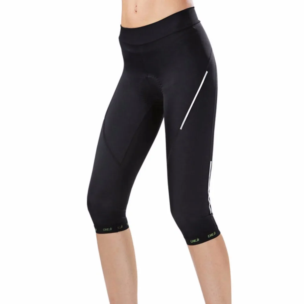 Women’s 3/4 Cycling Pants Compression CHEJI Team Ladies 3/4 Mountain Bike Tights Race Fit Bicycle Trousers Coolmax Padded
