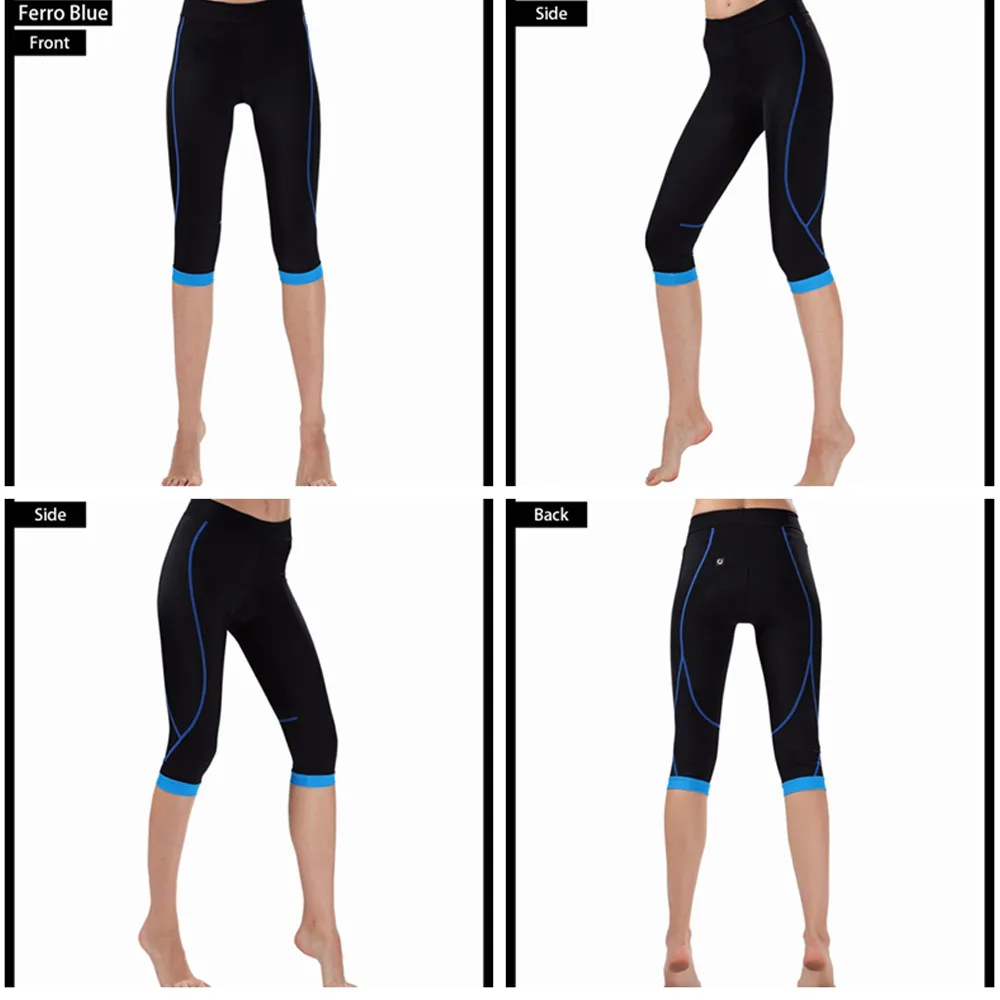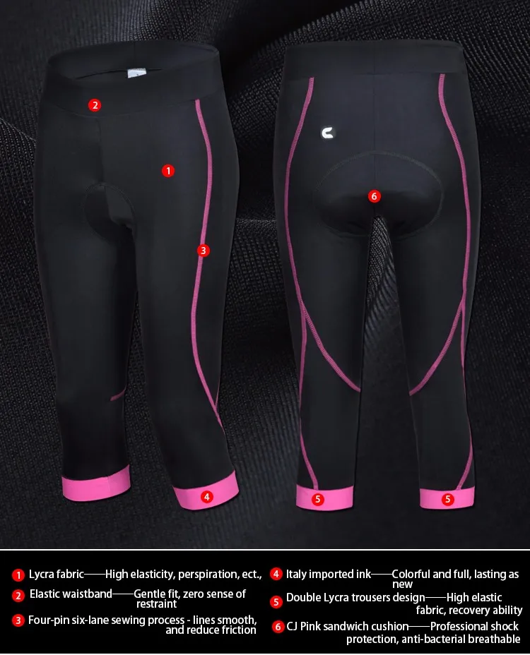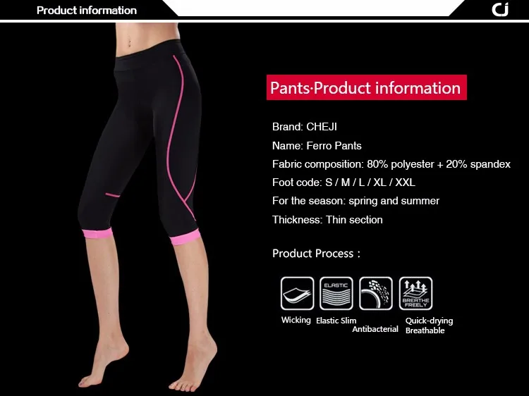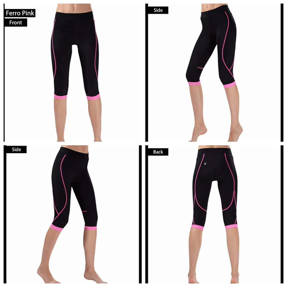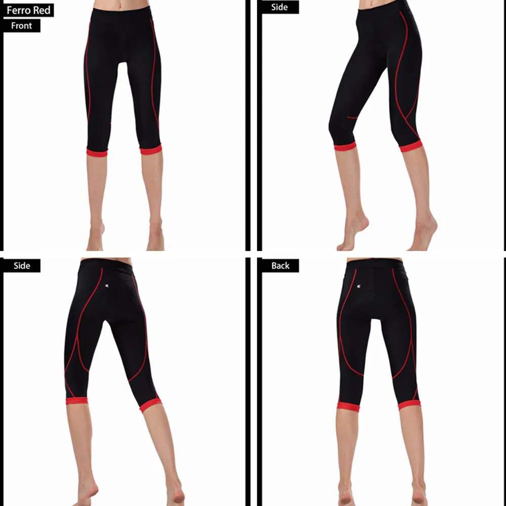 Women’s 3/4 Cycling Pants Compression CHEJI Team Ladies 3/4 Mountain Bike Tights Race Fit Bicycle Trousers Coolmax Padded