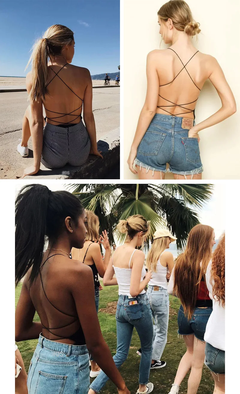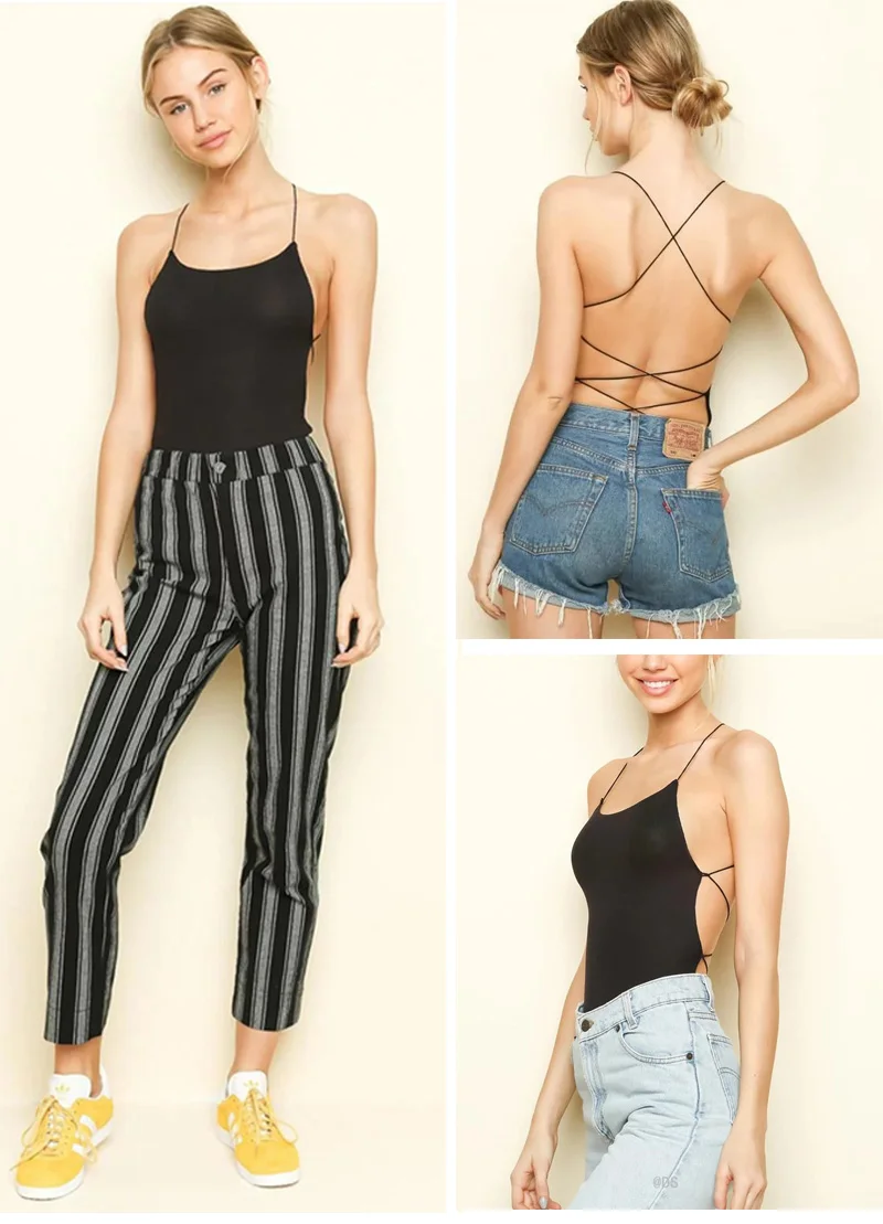 Women’s Backless Bodysuit Jumpsuit Romper.Back Cross Skinny One piece Suit Spaghetti Strap Camis.Sexy Bodycon Overalls Camisole