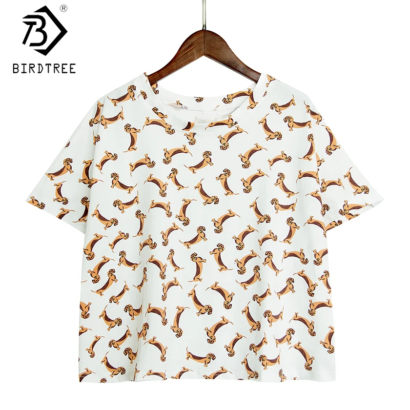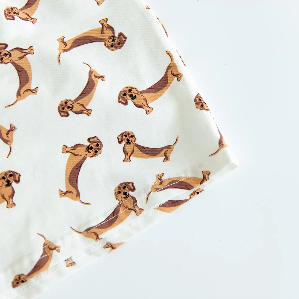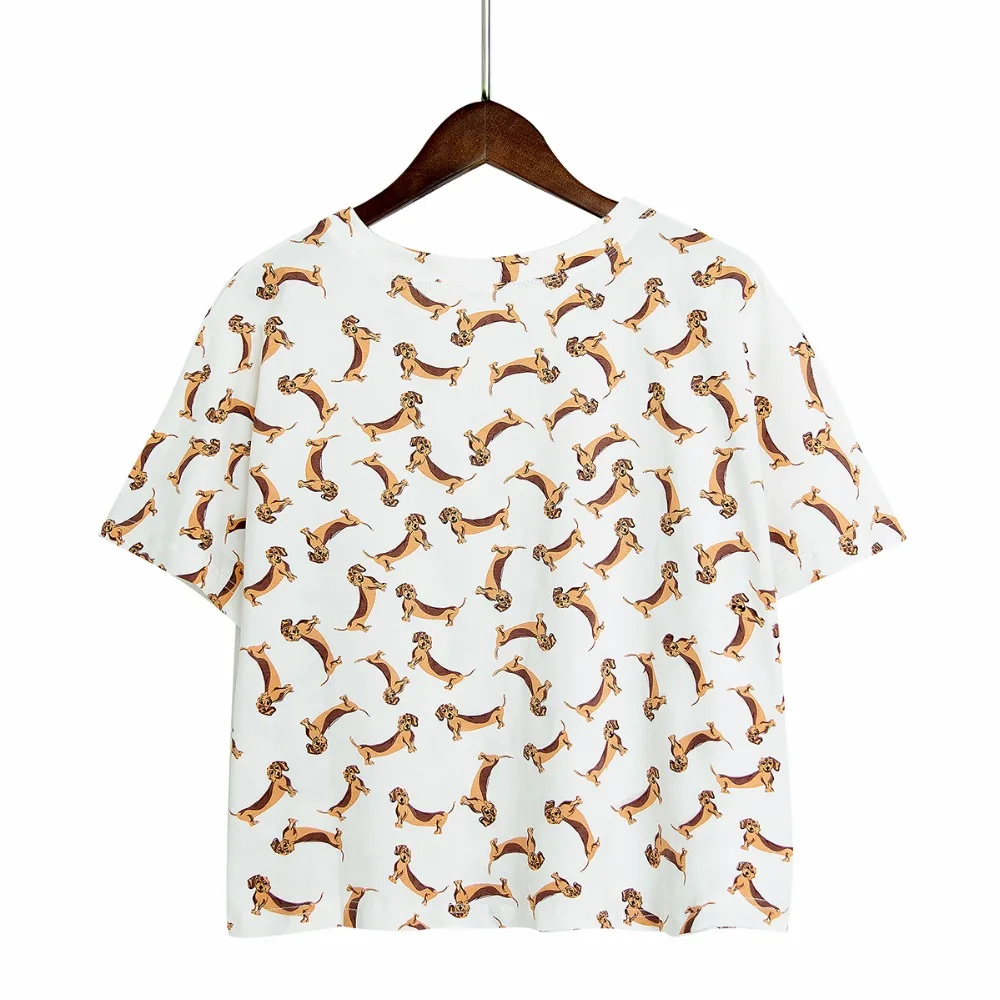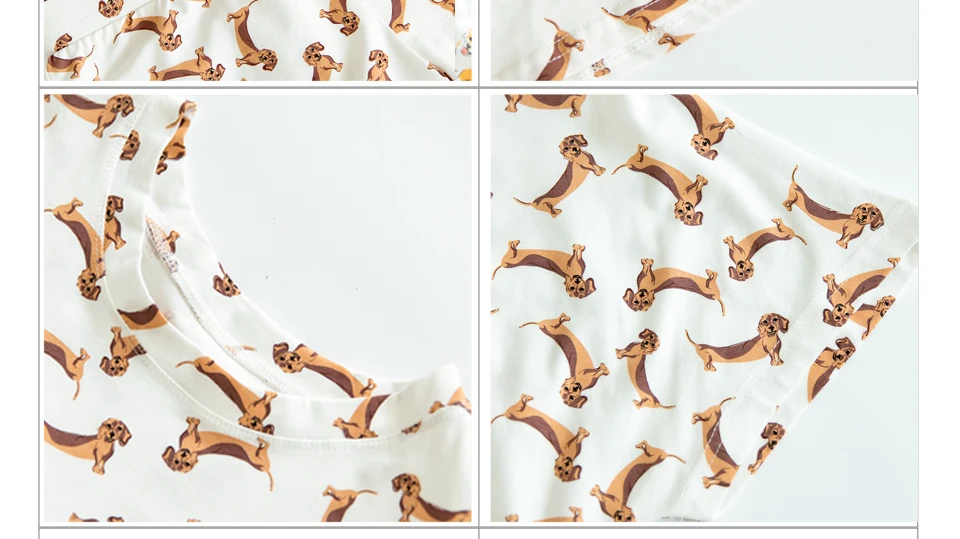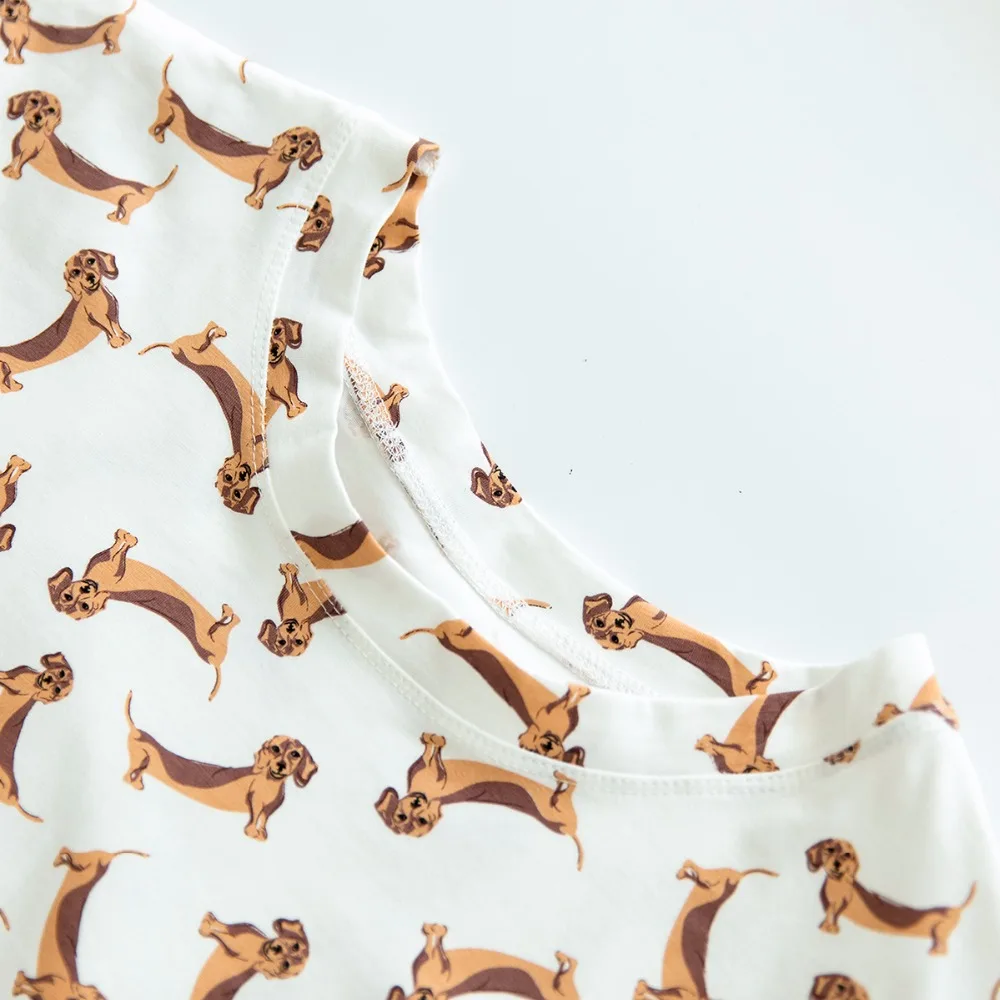 Women’s Cute Dachshund Dog Cartoon Print Pajama Crop Top Loose Fit White Sleep Tops Plus Size Dropshipping Suport! T79503J