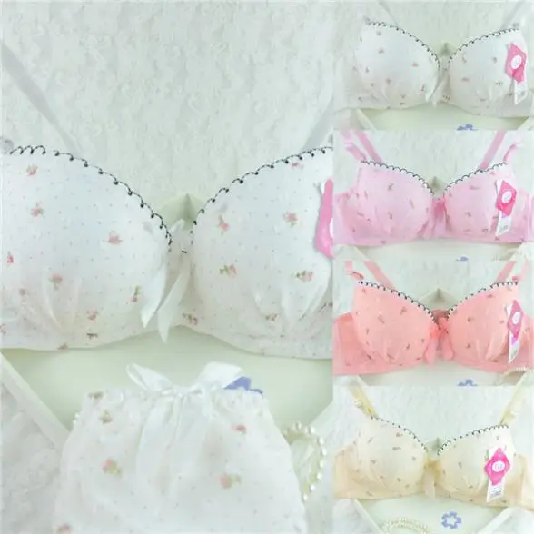 Womens Flower Print Lace Bra Brief Set Push-up Bra Knickers Sets Floral Underwear Brassiere 32-36B Bra Set Lingerie