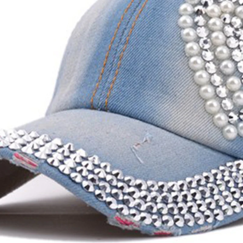 Women’s Hats Caps Rhinestone Heart Shape Baseball Cap for Women Cowboy Denim Baseball Hat