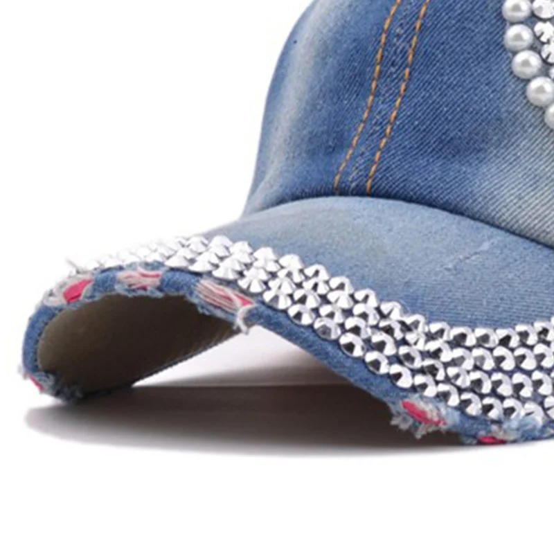 Women’s Hats Caps Rhinestone Heart Shape Baseball Cap for Women Cowboy Denim Baseball Hat