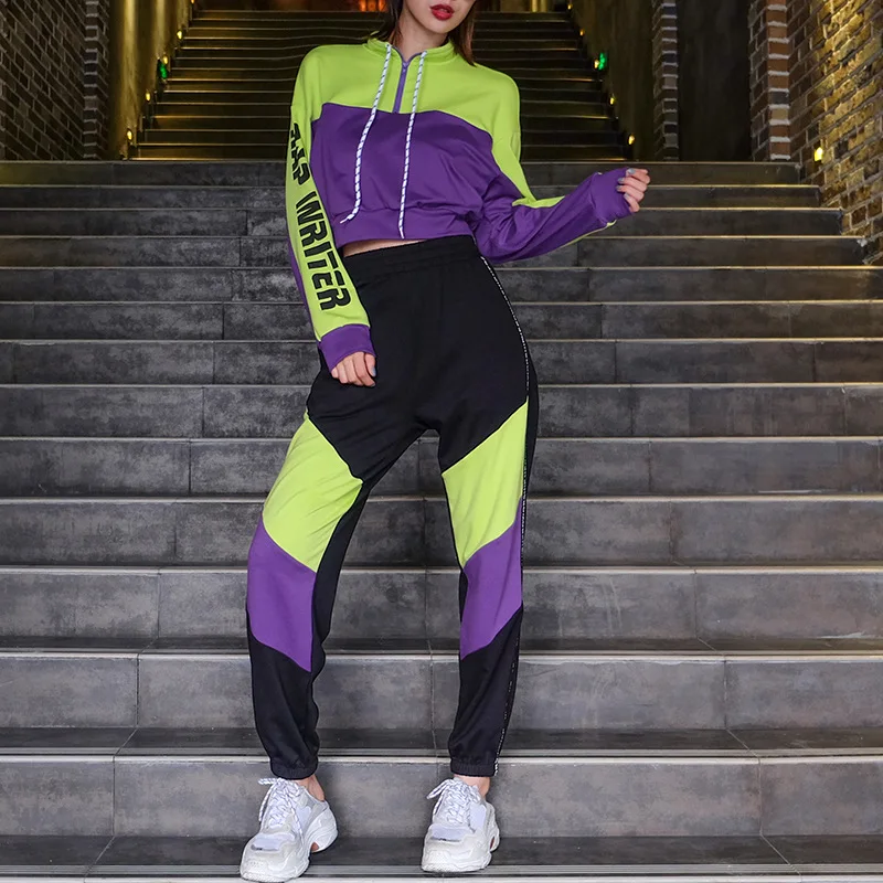 Womens Hoodies Pant Clothing Loose 2 piece Set Warm New Women Ladies patchwork Tracksuit Set Tops and cargo Pants Suit Female