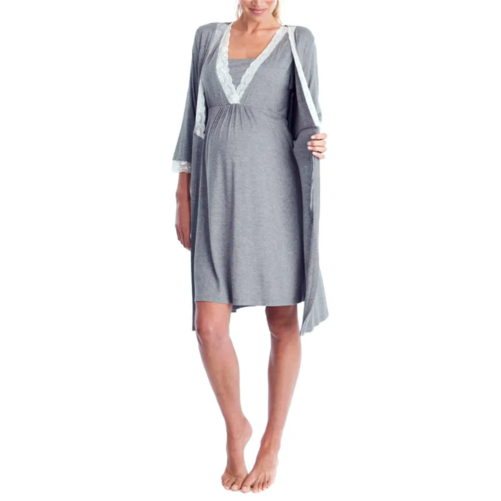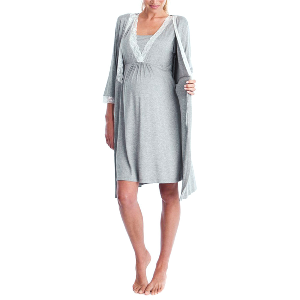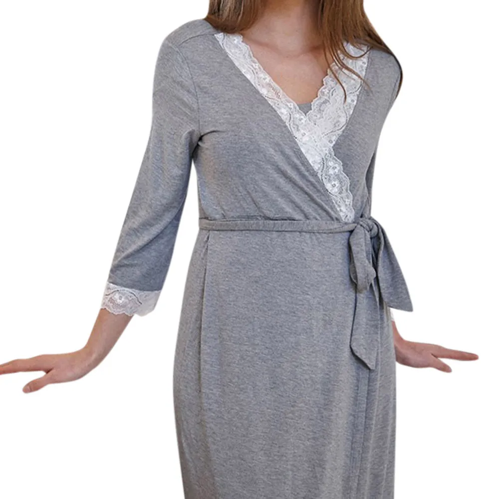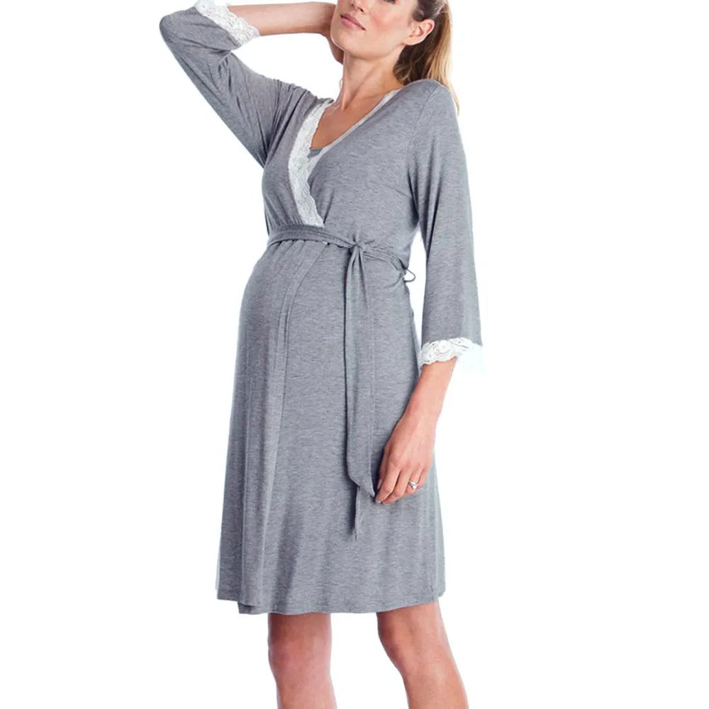 - Womens Lace Pregnants Casual Nursing Baby For Maternity Pajamas Night-Rob Dress Loose Comfortable Long Sleeve Pregnant Dress
