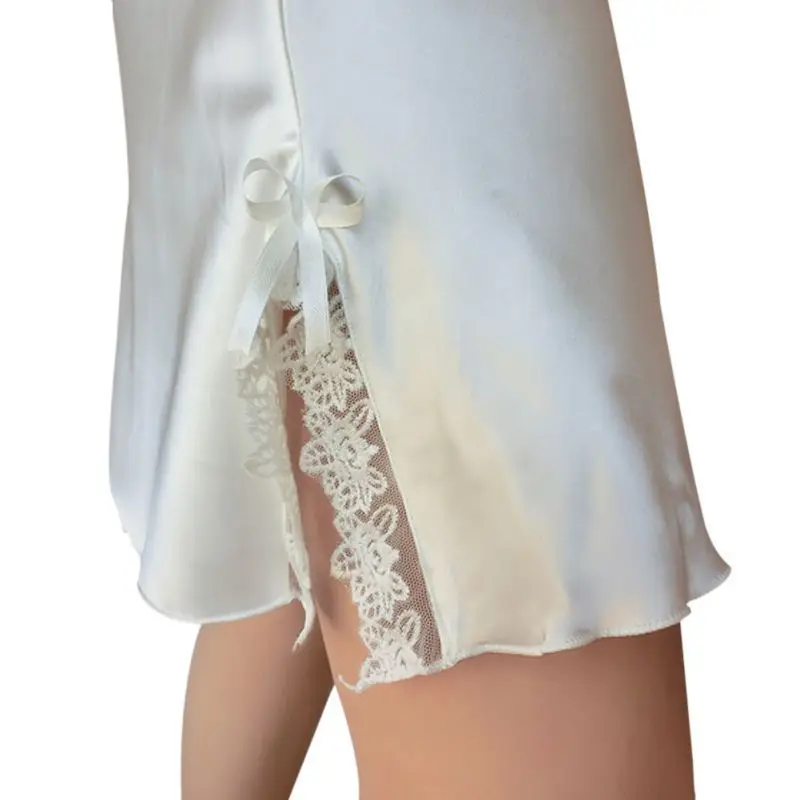 Women’s Lace Split Bow Sexy Nightwear Female Solid Spaghetti Strap Nightgowns Comfortable Ladies Sleepwear Dress for Women z1