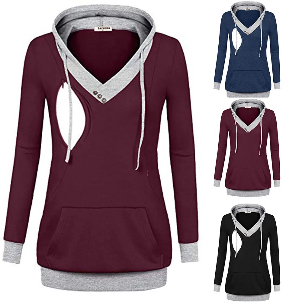 Women’s Maternity Nursing Hoodie Sweatshirt 2018 Kangaroo Pocket Maternity Clothing Breastfeeding Sweatshirts Fashion Pregnant