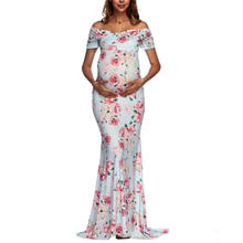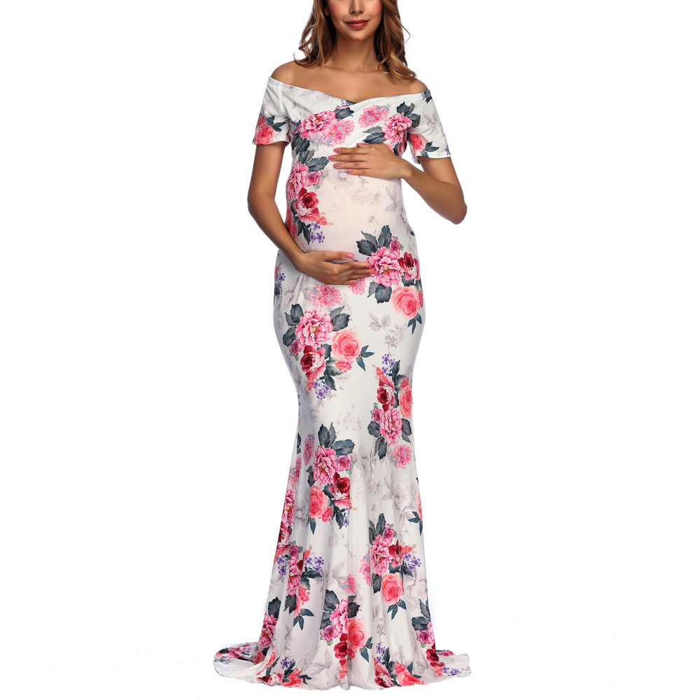Womens Off Shoulder Short Sleeve Pregnant Photography Dresses Sexy Comfortable Nursing Floral Printed Elegant Long Dresses