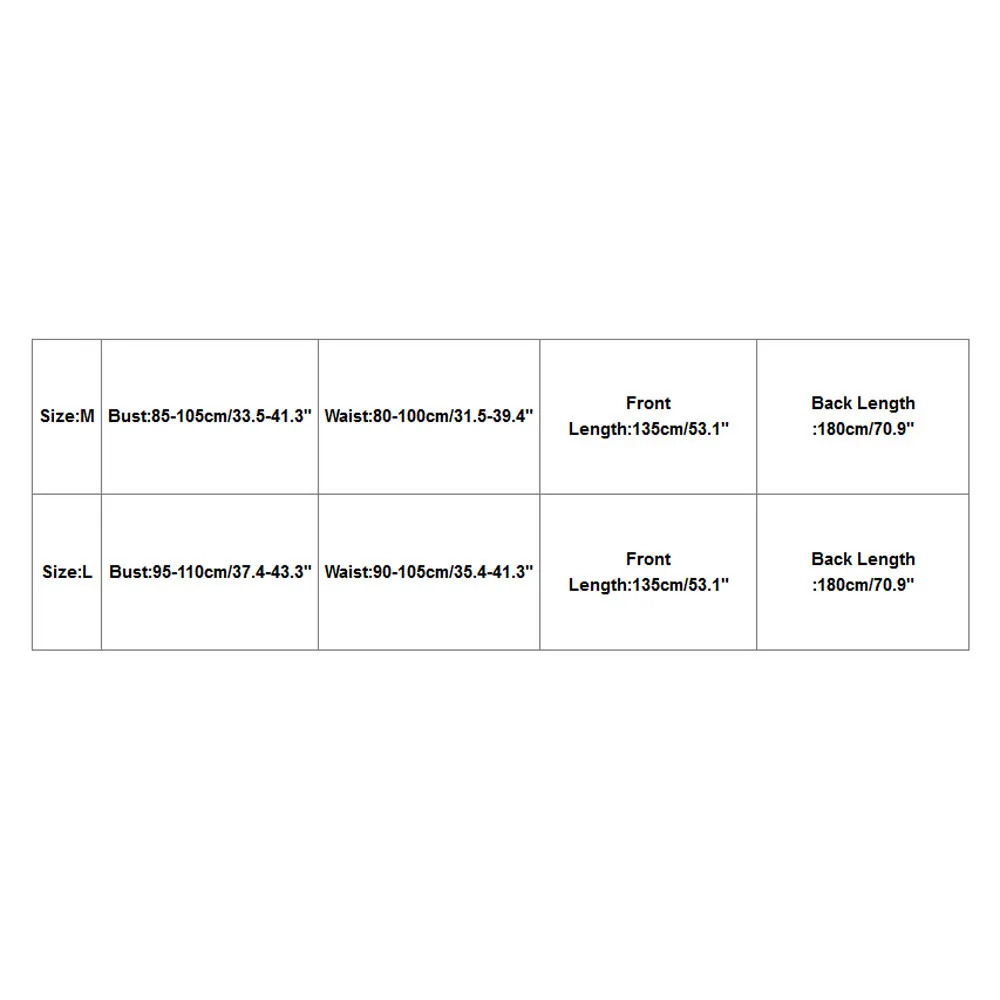 | Size | Bust | Waist | Front Length | Back Length |