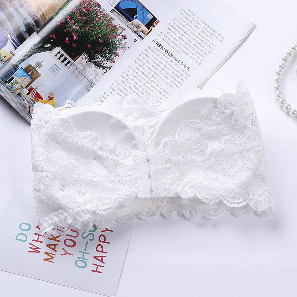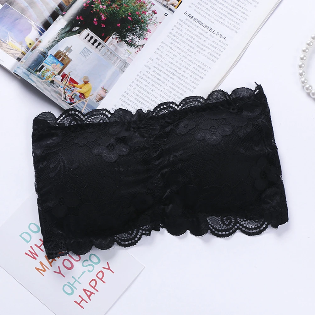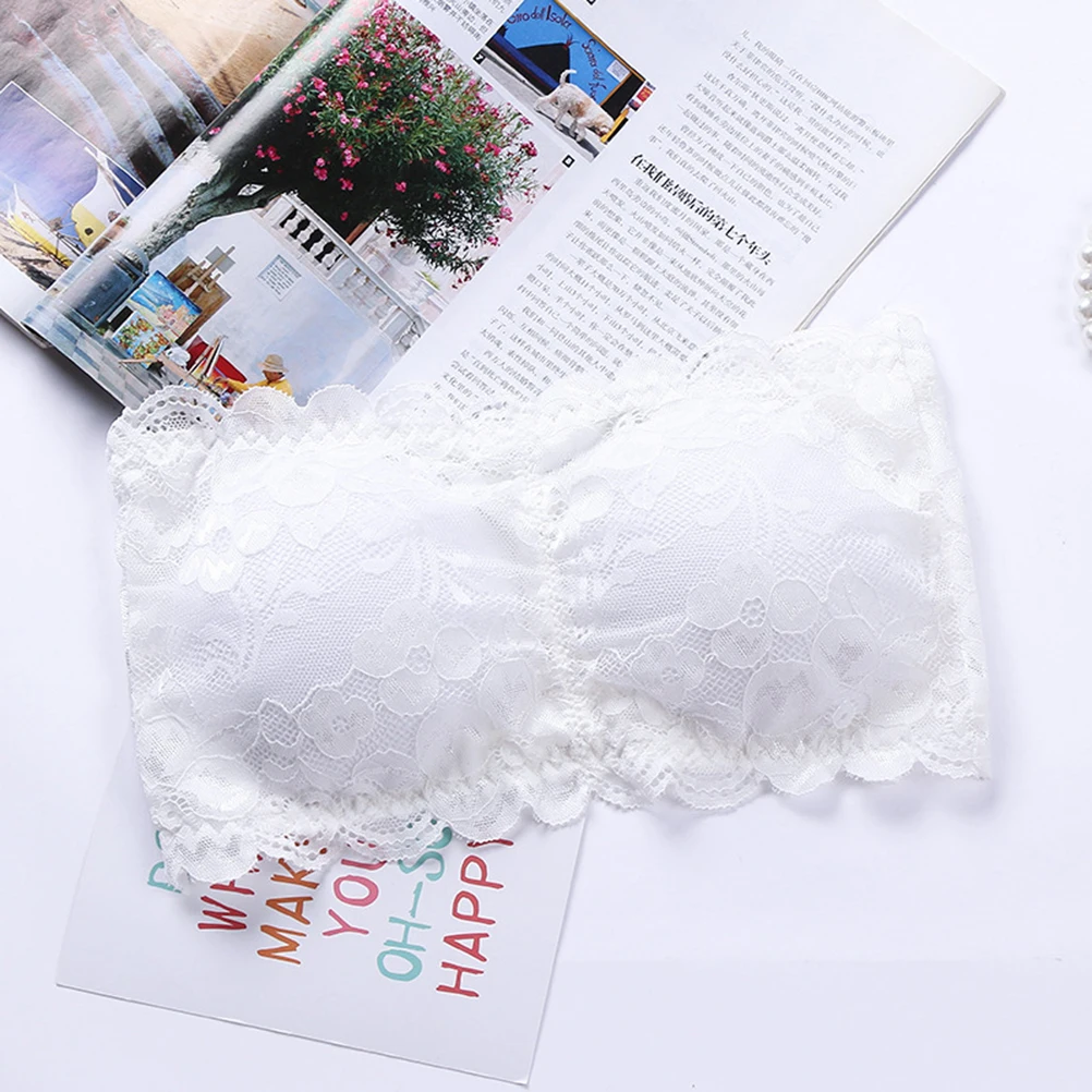 Womens One Size Strapless Lace Bandeau Bra Padded Removable Seamless Stretch Bandeau Tube Bra Top