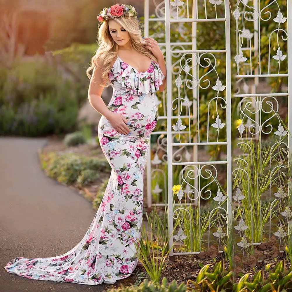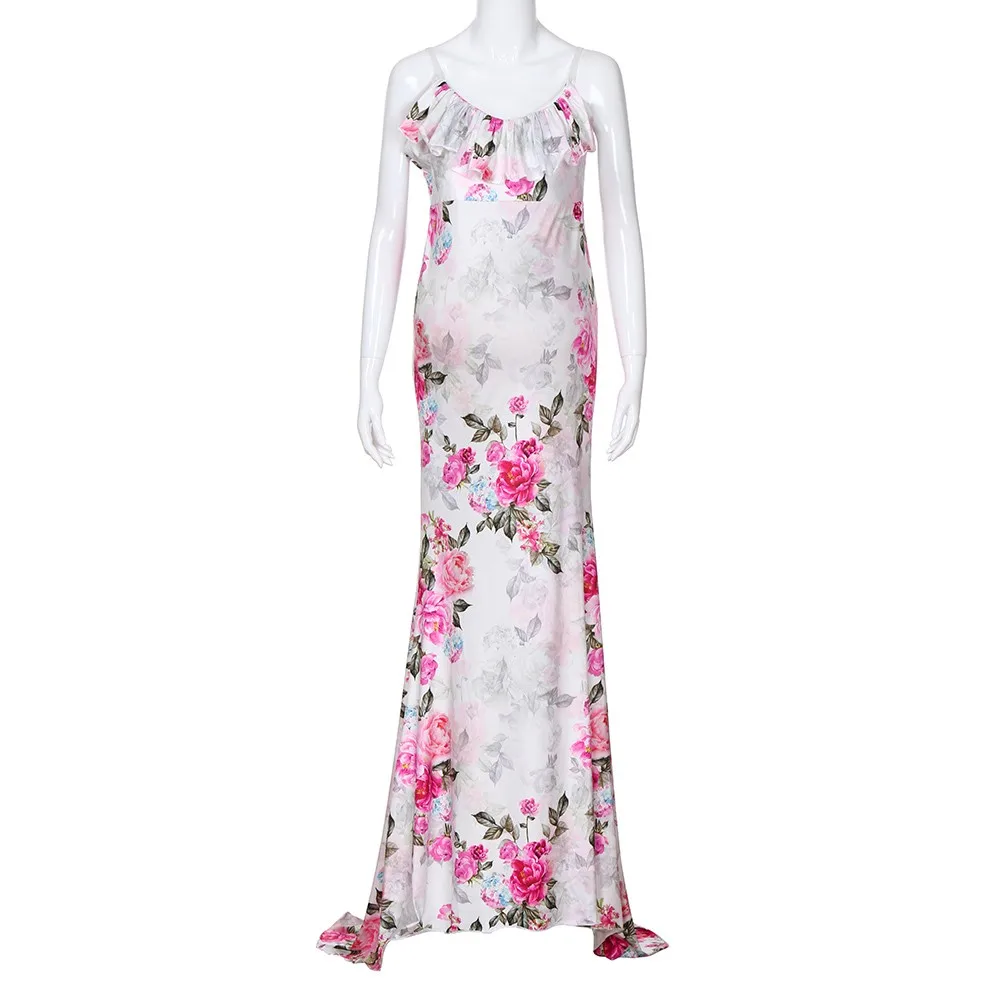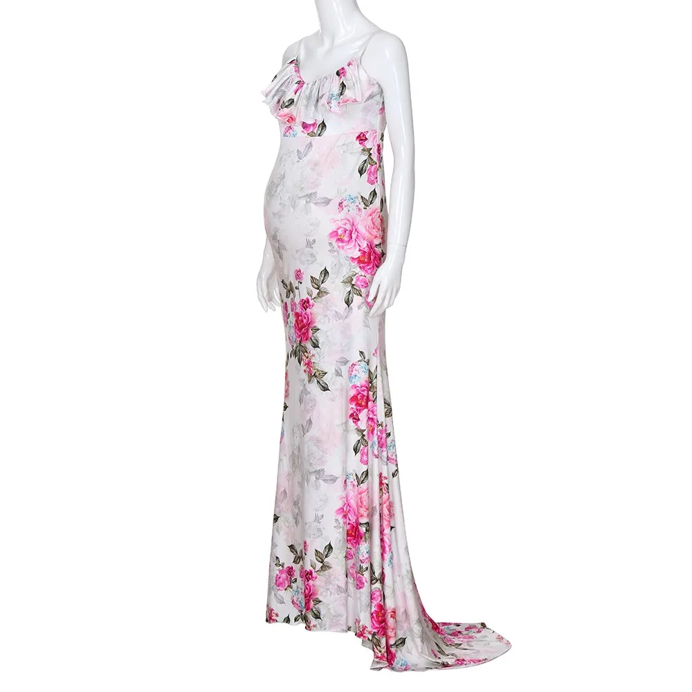 - Women’s Pregnancy V-Collar Dress Maternity Summer Sleeveless Sundress Sexy Pregnant Women Floral Printed Elegant Sling Dress