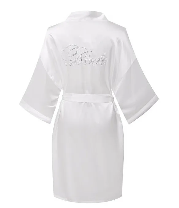 Women’s Pure Colour Short Sparkle Rhinestone Bridesmaid Kimono Robes for Wedding Party Bride Bathrobe Sleepwear 8 colors