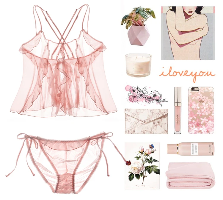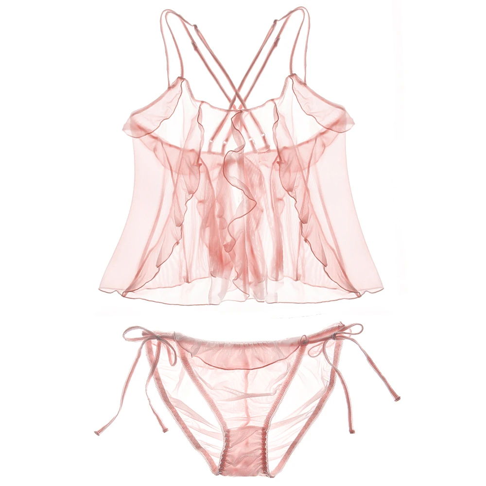 Women’s Sexy Lingerie Pink Ruffles Camis+Briefs Two-pieces Pajama Sets.Ladies Lolita Nightgown Pajamas Suit.Sleepwear Loungewear