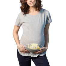 - Womens Short Sleeve Print Pregnants Tops Cotton O-Neck Comfortable Women Nursing Blouse Baby For Maternity T-Shirt Blouse Tops