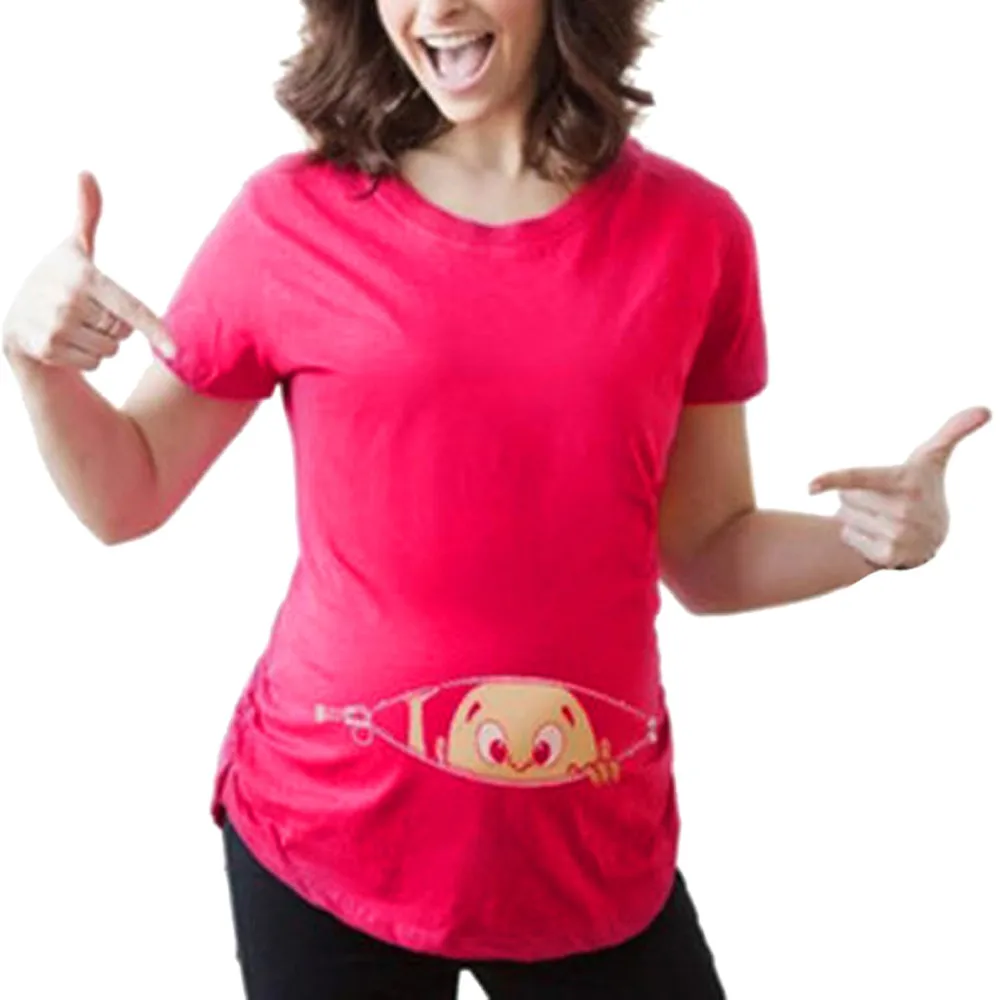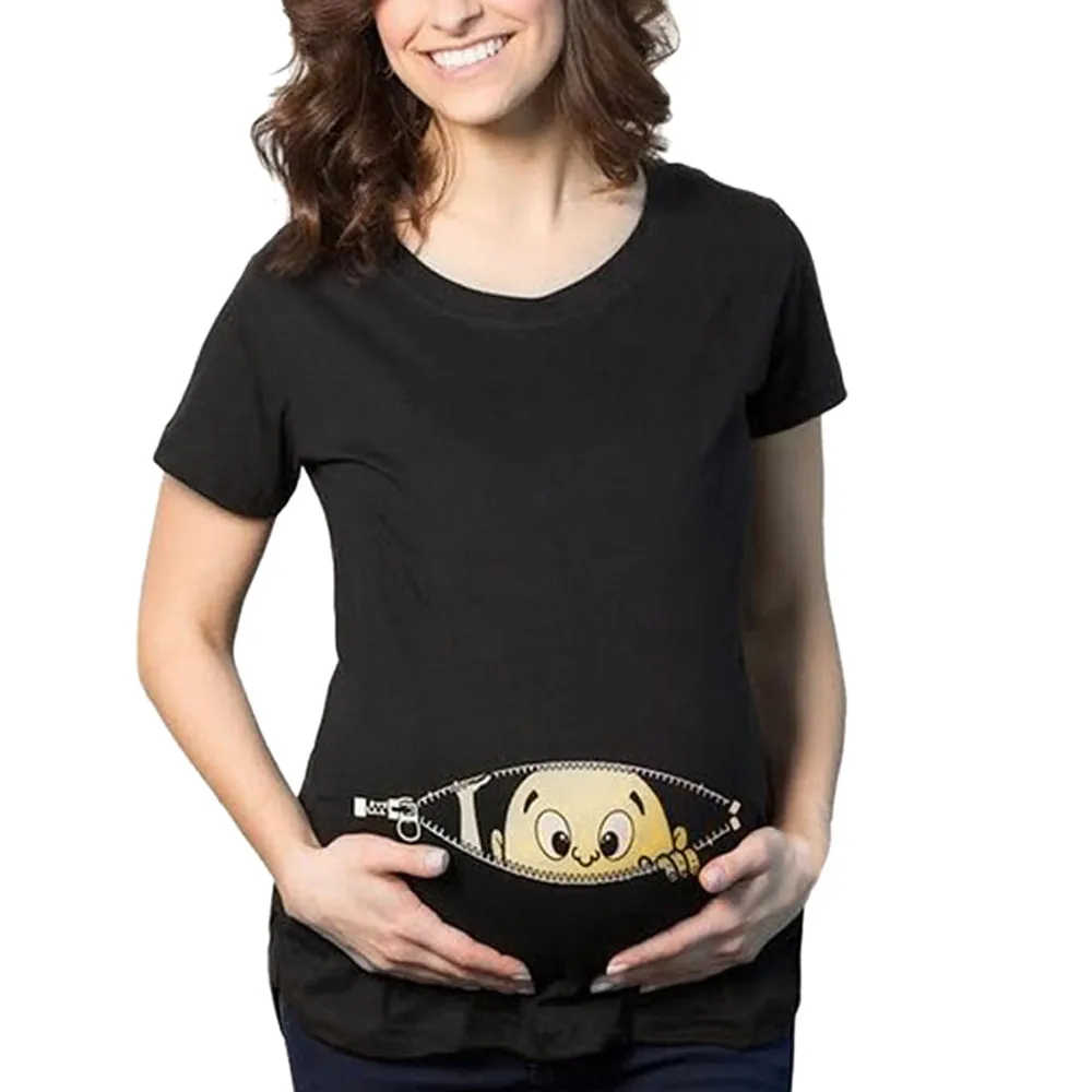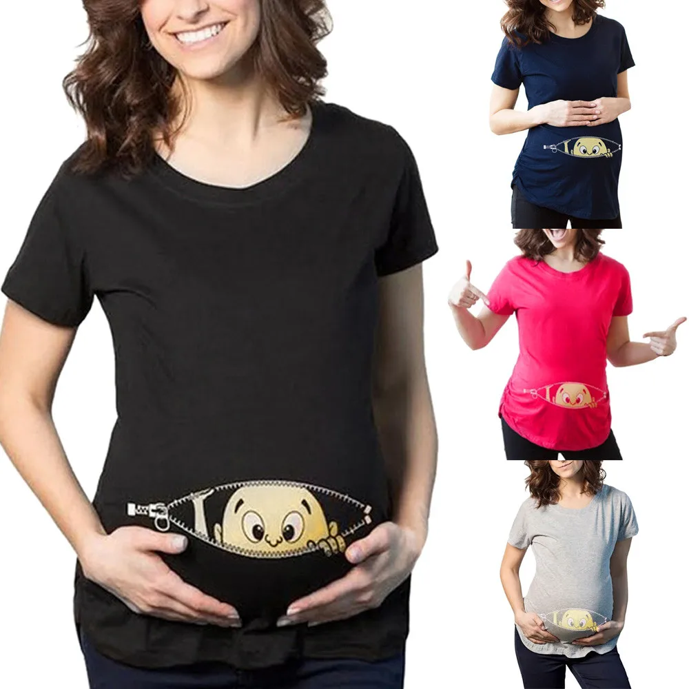 - Womens Short Sleeve Print Pregnants Tops Cotton O-Neck Comfortable Women Nursing Blouse Baby For Maternity T-Shirt Blouse Tops