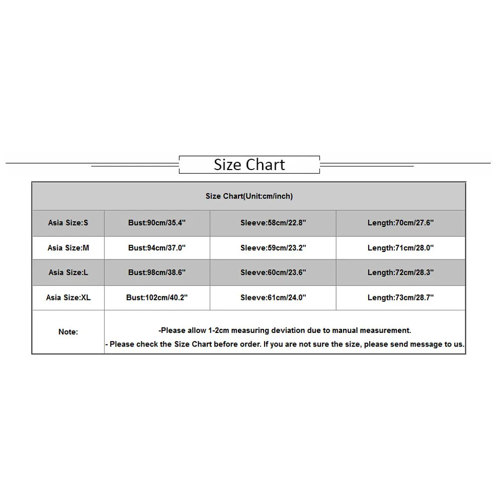 Asia Size:XL Bust:102cm/40.2″ Sleeve:61cm/24.0″ Length:73cm/28.7″