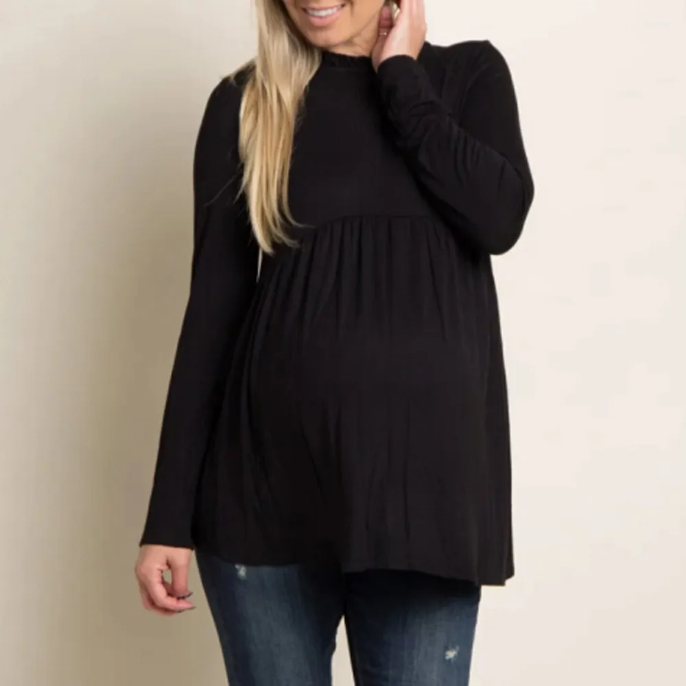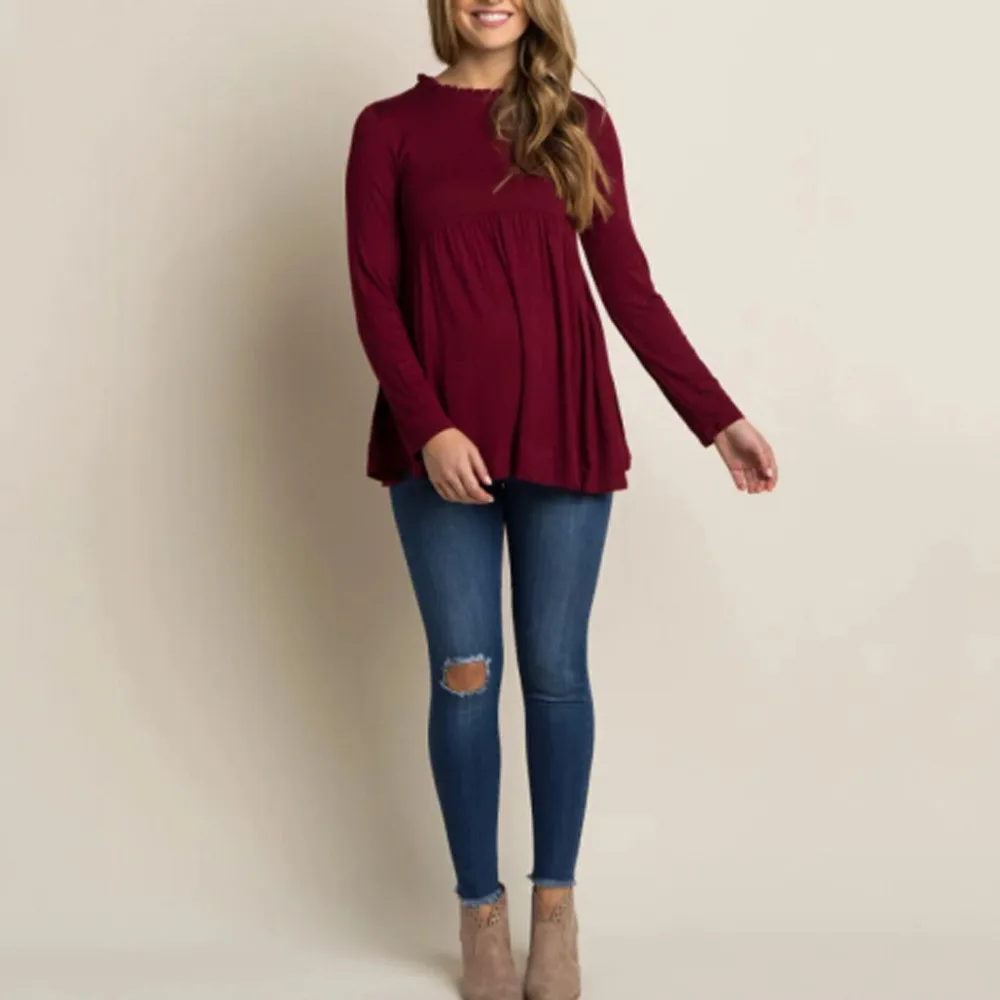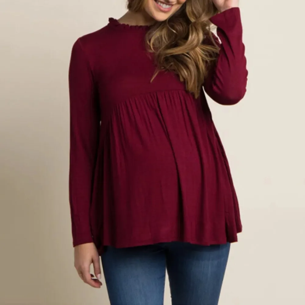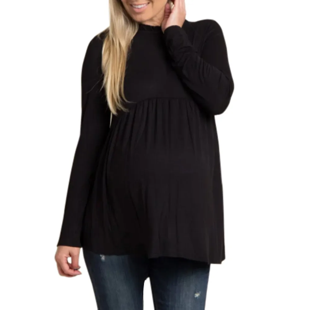 Soft Comfortable Womens Pregnants Tops Cotton O-Neck Solid Color Long Sleeve Nursing Blouse Baby For Maternity T-Shirt Clothes