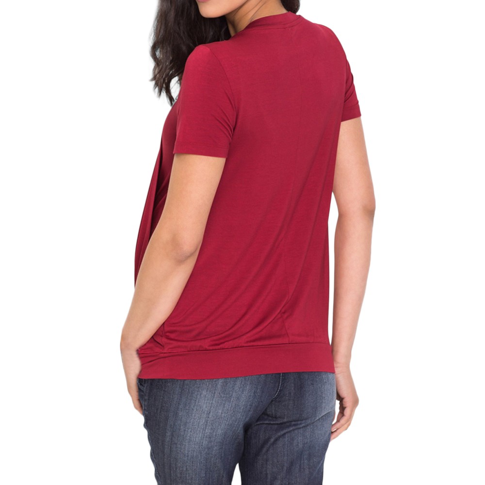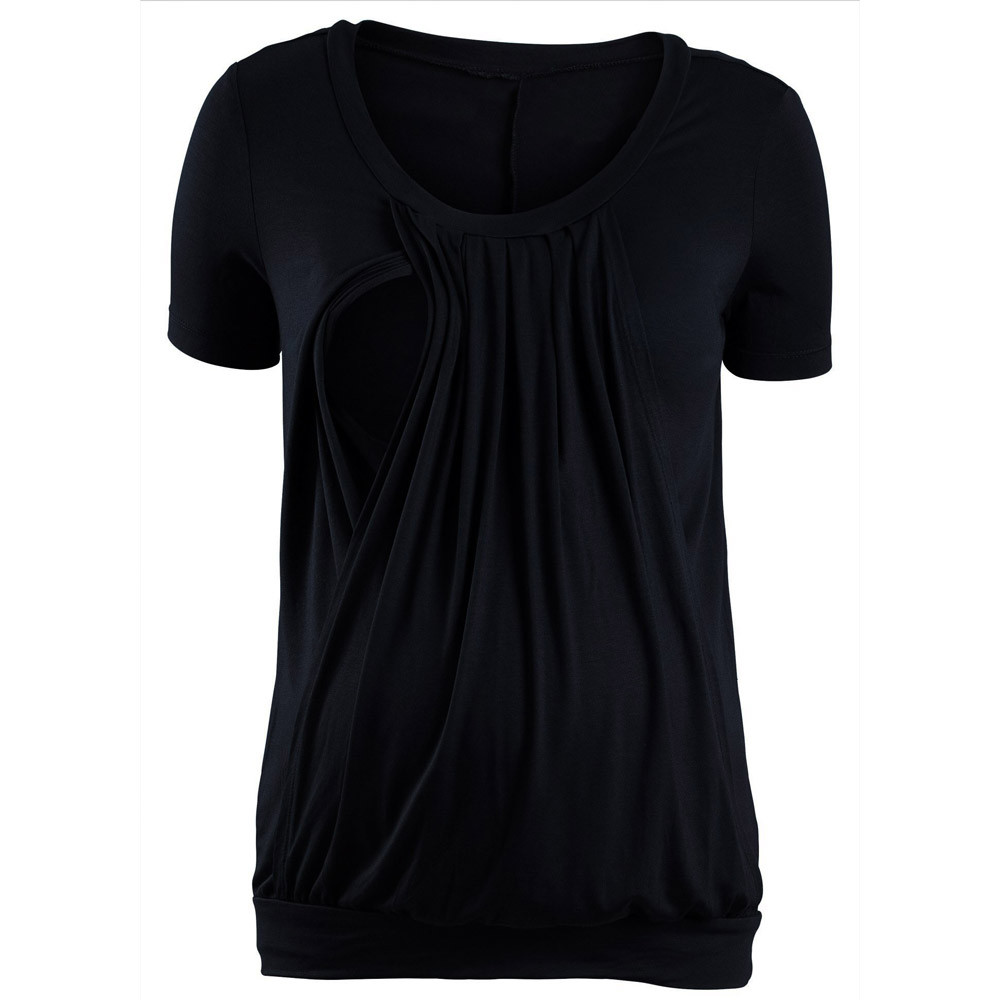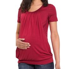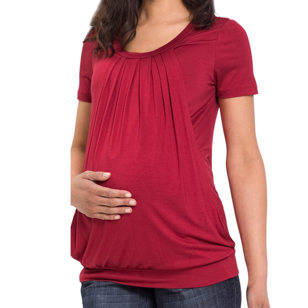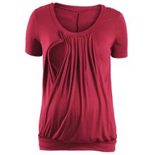 Women’s Solid Color Maternity T-Shirt Soft Comfortable Nursing Wrap Top Solid Wrinkled Double Layer Pregnant Blouse T-Shirt