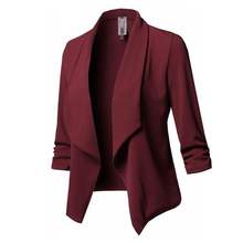 Womens Three-Quarter Sleeve Office Lapel Coat Open Front Cardigan Jacket Solid W729