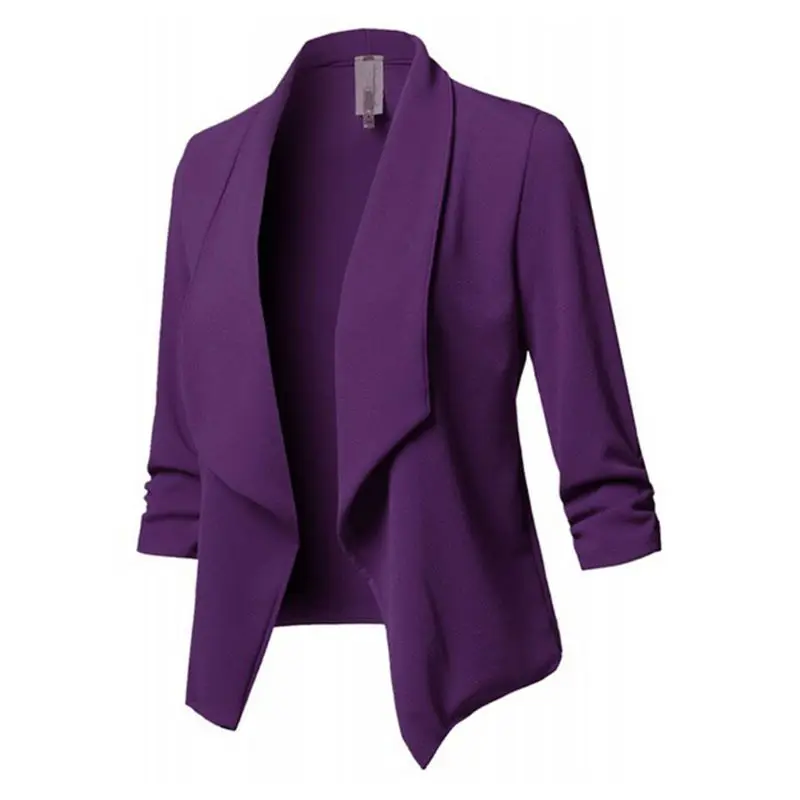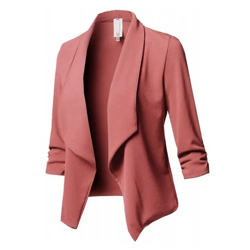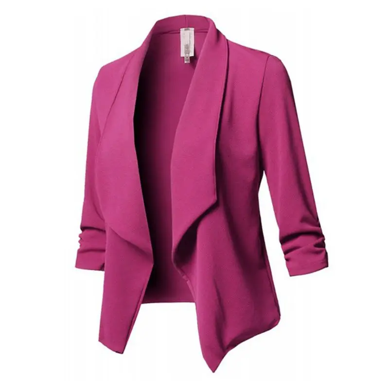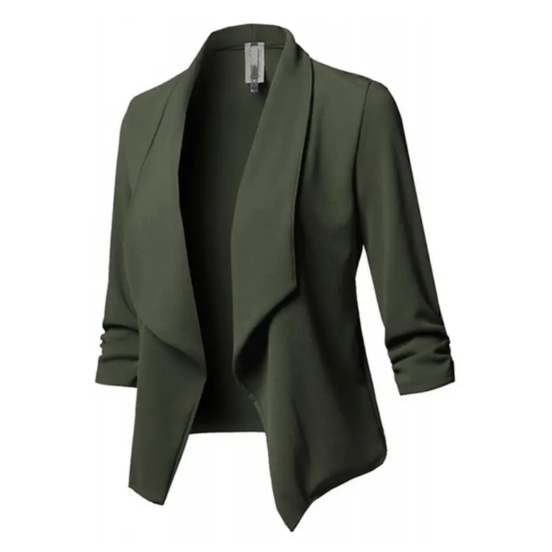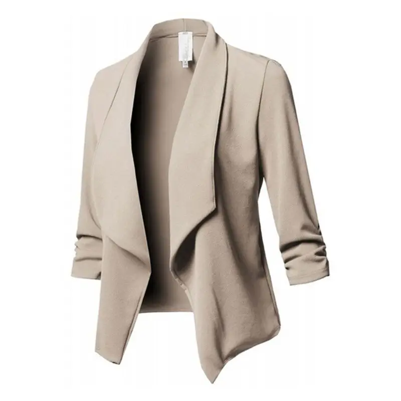 Womens Three-Quarter Sleeve Office Lapel Coat Open Front Cardigan Jacket Solid W729