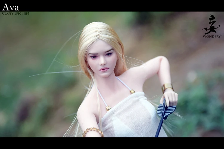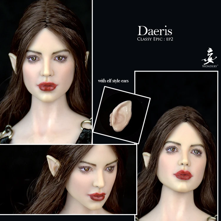 WONDERY 1/6 famale headplay ear can change implanted hair in stock