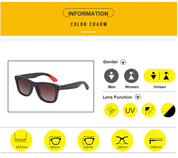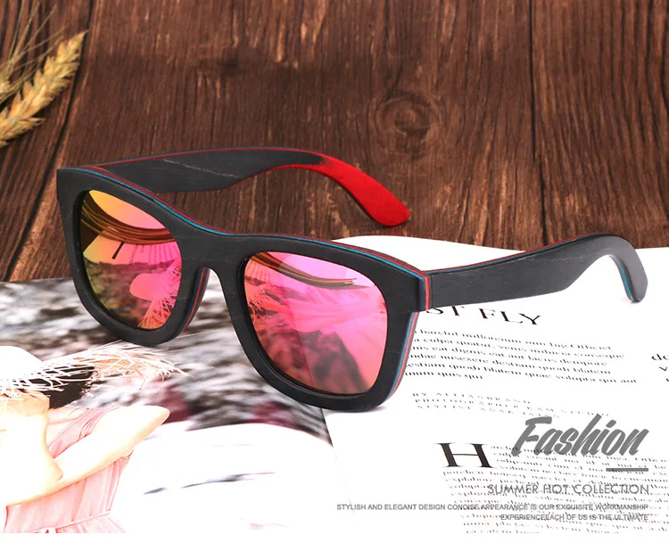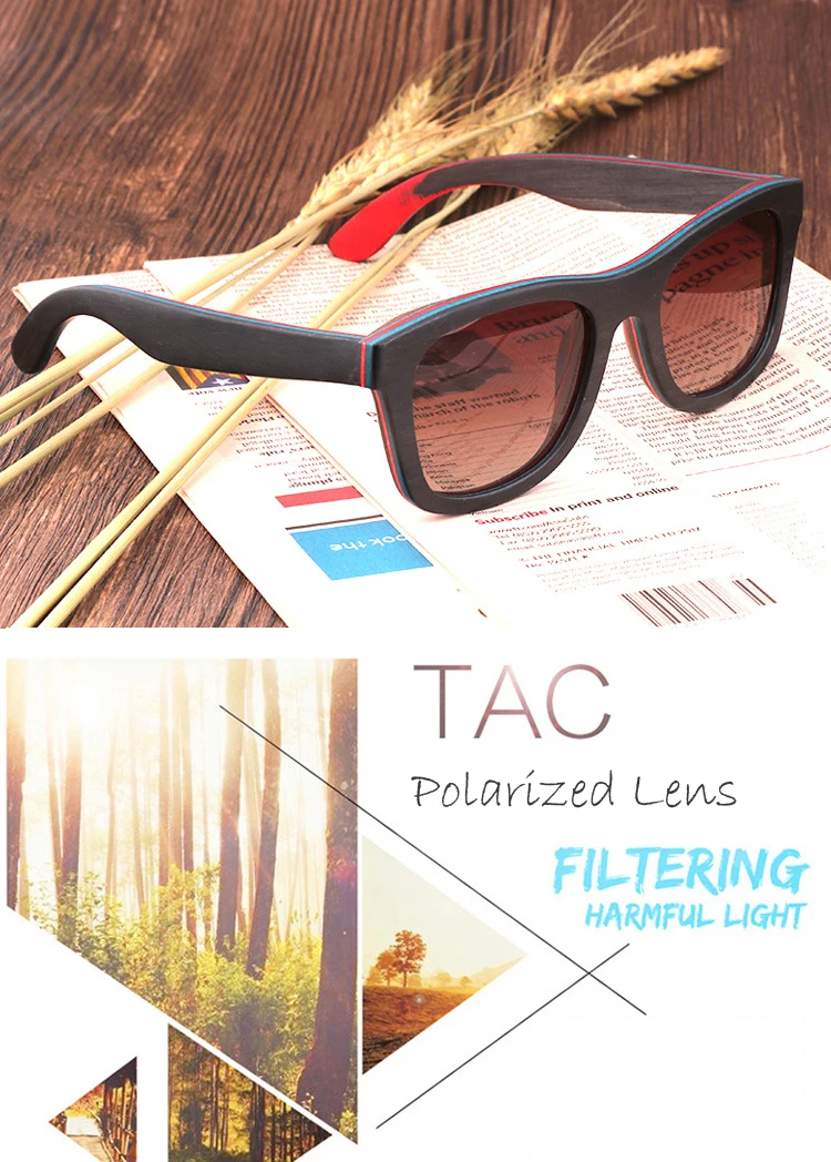 Wood Sunglasses For Men and Women Polarized Lens Skateboard Color Wood Sun glasses High Quality