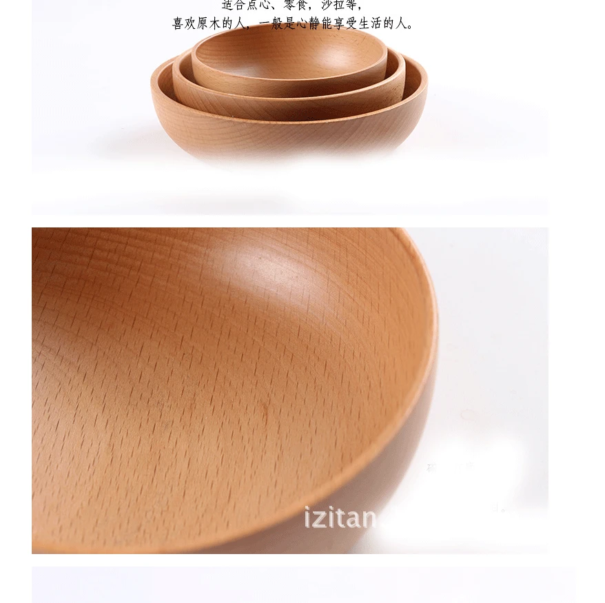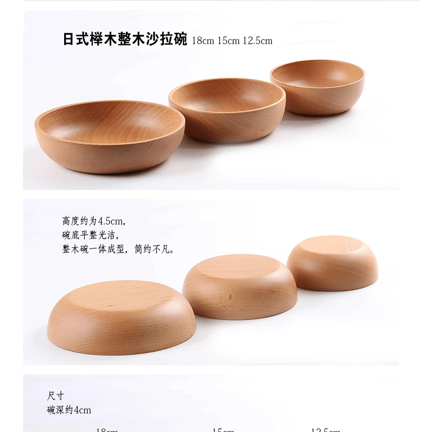 Wooden Salad Bowl Large Round Wood Salad Soup Dining Bowl Plates Premium Wood Kitchen Utensils Set Natural HandMade