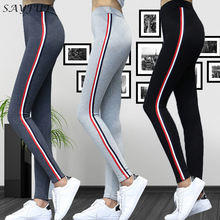 Workout Pants Women’s Super Elastic Sportes Pants Black Gray Tummy Control Capris Pants Fashion Stripe On side Plus Size S-5XL